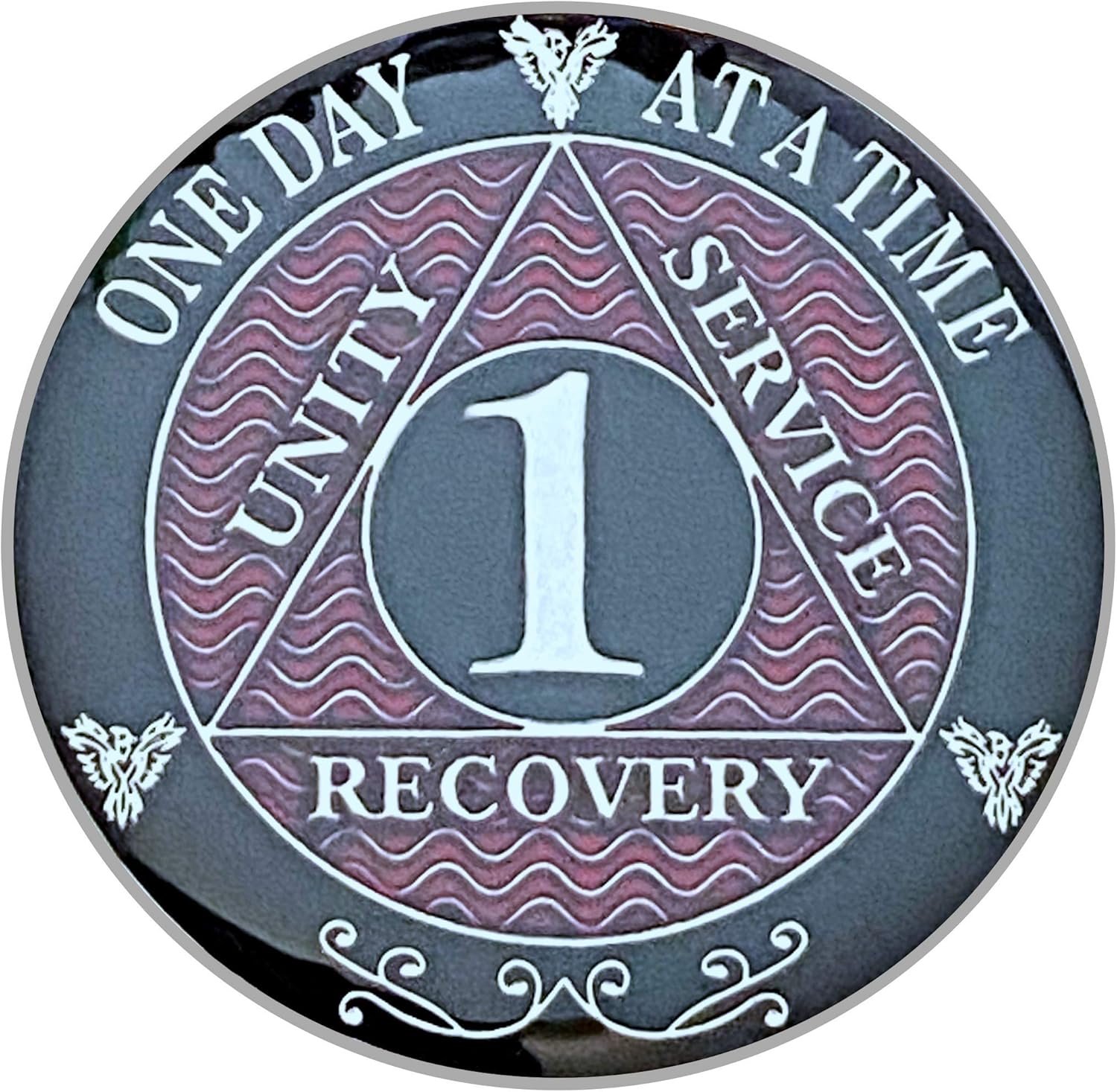 1 Year AA Coin Silver Color Plated-Medallion, Recovery Chip, 12 Step Token, Alcoholics Anonymous Coin