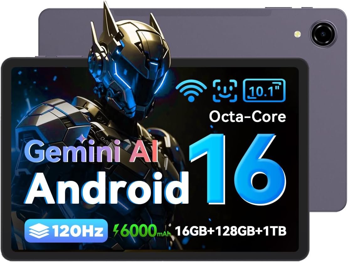 10.1 inch Android 16 Tablet with Gemini AI丨120Hz HD in-Cell Screen丨16(4+12) GB RAM 128GB ROM 1TB TF丨Octa-Core丨Widewine L1丨2.4G/5G WiFi+BT 5.0+GPS丨6000mAh丨Bpad 10 SE