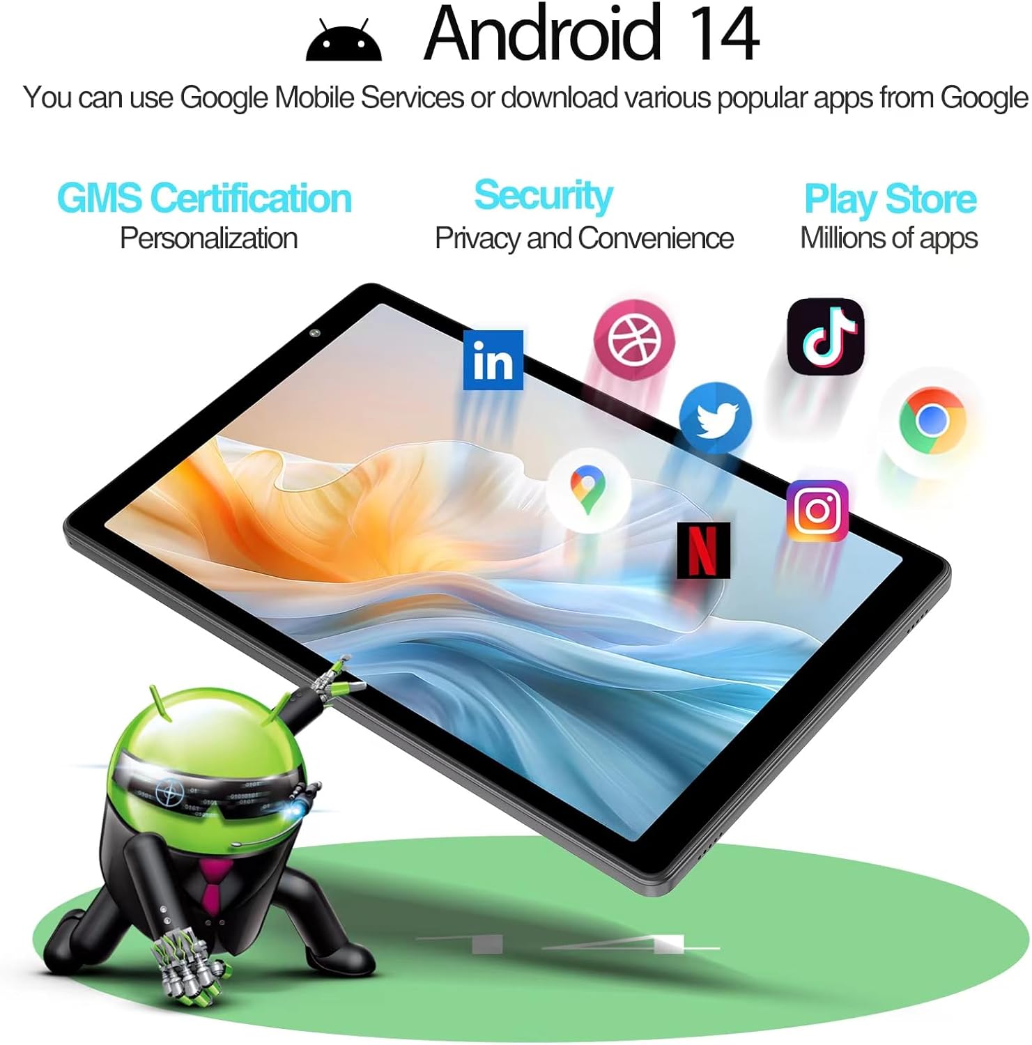 [Google Certified Android 14] -10 inch Tablet is GMS certified with Android 14 System,pre-installed Google Play Store, built-in GPS, eye protection mode.You can download many APPs from Google PLAY, such as YouTube, Tiktok, Facebook.