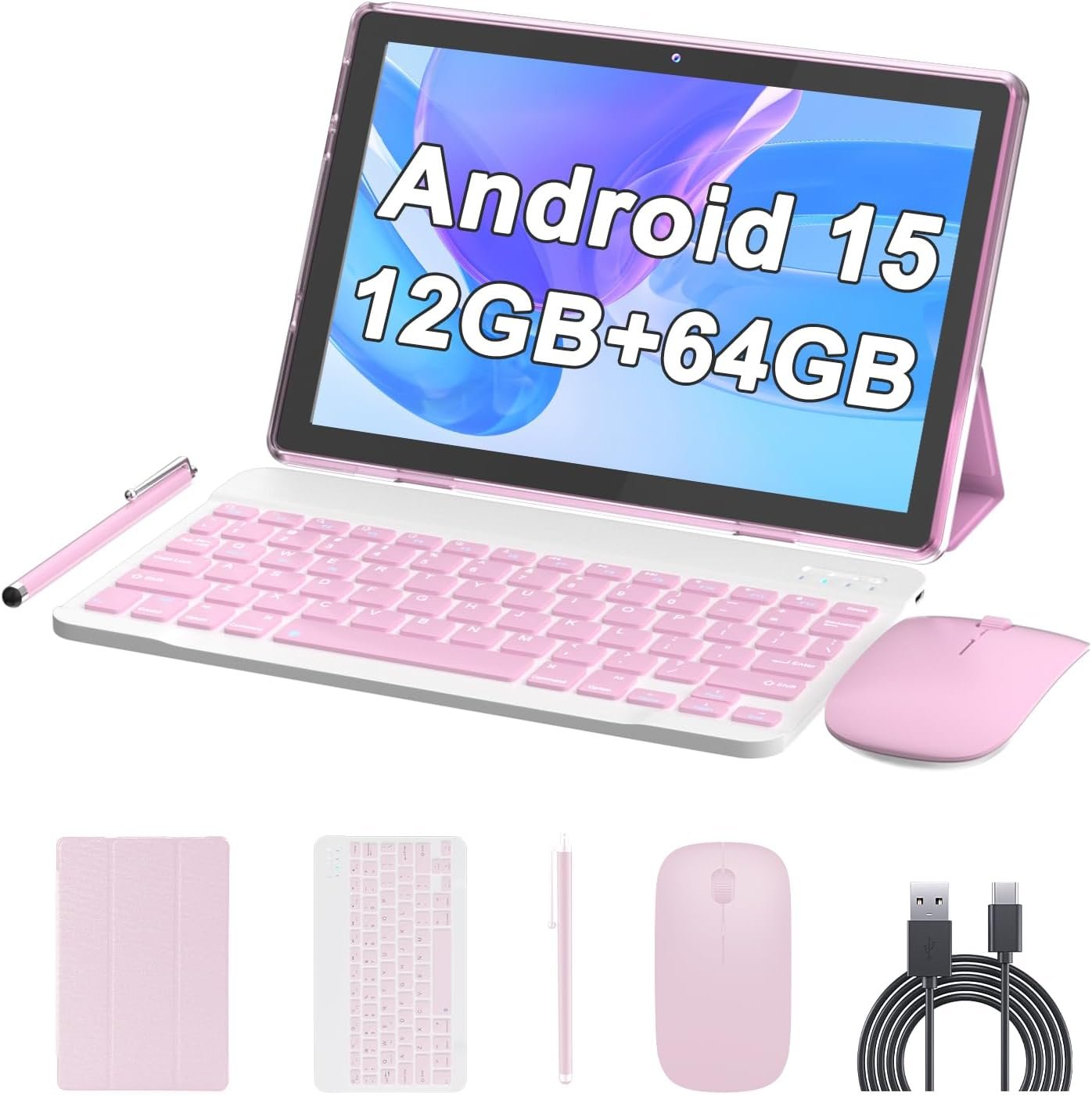 Your versatile assistant: 10.1 inch smart android tablet, master work and entertainment at your fingertips! Do you want a electronics tablet can work efficiently and enjoy watching TV shows? This 10.1-inch Android 15 tablet is the answer! The 2.0GHz processor and 12GB RAM make multitasking effortless, while the 1280*800 high-definition screen presents vivid picture quality, providing ultimate clarity for both document processing and movie watching. ✨ Efficient Office: tablet with keyboard, mouse, and stylus, transforming into a portable notebook for editing files anytime, anywhere. ✨ Long lasting battery life: The 6000mAh battery supports long-term use, eliminating the need for frequent charging during business trips. ✨ Massive storage: tablets with 64GB of memory, expandable up to 1TB of space, allowing for easy storage of photos, videos, and applications. ✨ Fast networking: 10.1 inch android tablets With the dual support of 5G and WiFi 6, downloading and video calling are one step faster. Easily and efficiently handle every scenario!