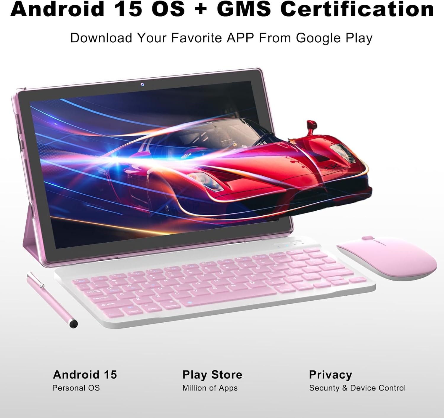 10 Inch Tablet Android 15(NOT GO) Tablets 2 in 1 tablet With keyboard 12GB RAM+64GB ROM(Supports 1TB expansion) Tableta 2MP+8MP Camera 6000mAh Battery Mouse/Case/Stylus 5G Wifi-6 10.1″ Android Tablets