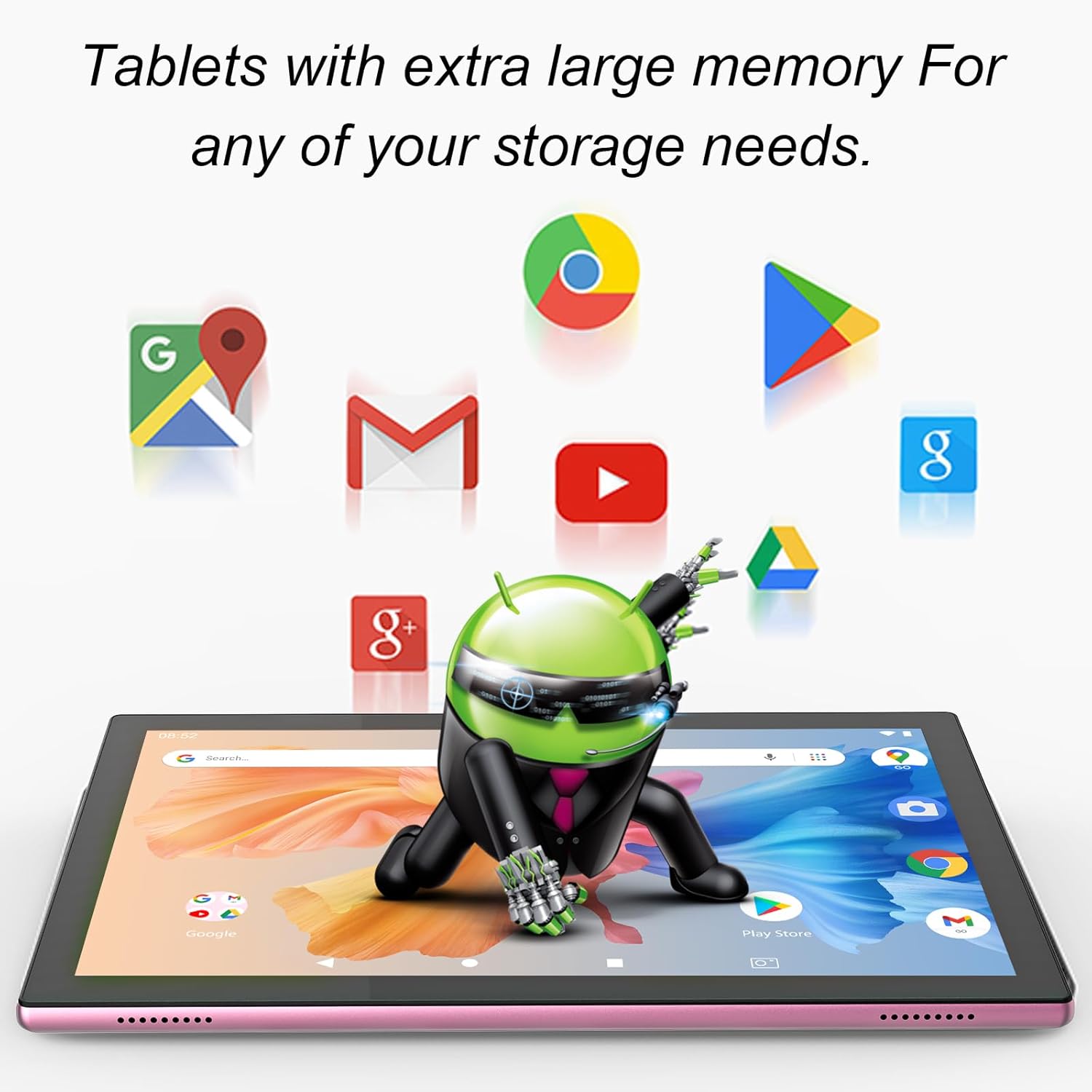 【Faster Responsive Performance】Our 10 inch tablet equipped with stable Android 15.0 system, Quad-core CPU, support G-sensor, Bluetooth, and FM. 8GB RAM(Contains 5GB of virtual memory) and 32GB ROM, with microSD card slot which can expanded up to 1024GB, more app, songs, videos and pictures can be saved right on your tablet.