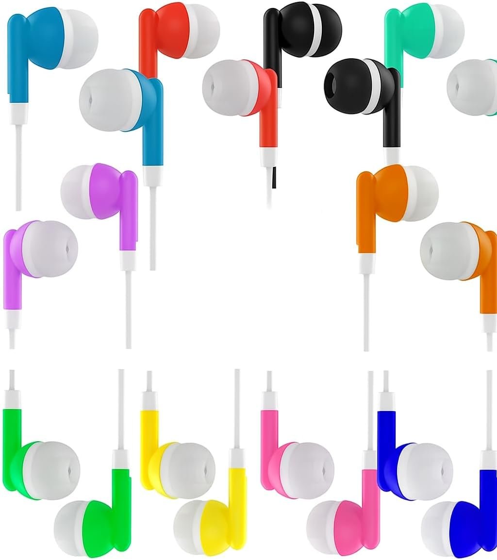 10 Pack Earbuds Wired Kid Headphones for School Classroom Ear Buds audifonos para niños chromebook Earphones Set Learning Student Bulk for Laptop iPhone Galaxy Gym Computer PL 3.5 Jack Travel Airplane