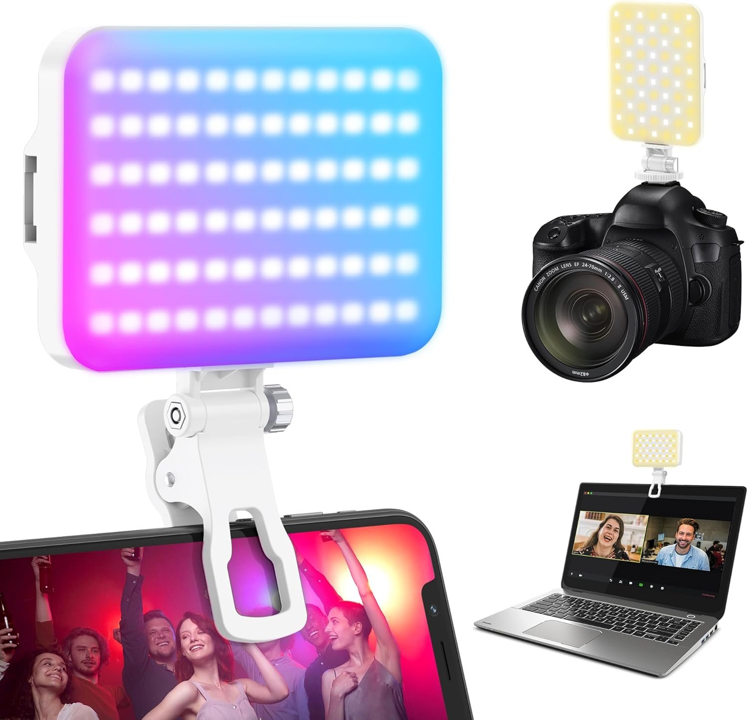 【3CCT Daily Lighitng】Enjoy natural and professional lighting with adjustable color temperatures from warm(2500K) to daylight (6500k). With a CRl of 97, the selfie light for iphone ensures accurate color rendering, making your skin tones and subjects look natural. Compatible with phone, iphone, laptop, computer and camera for video conference and daily shooting.