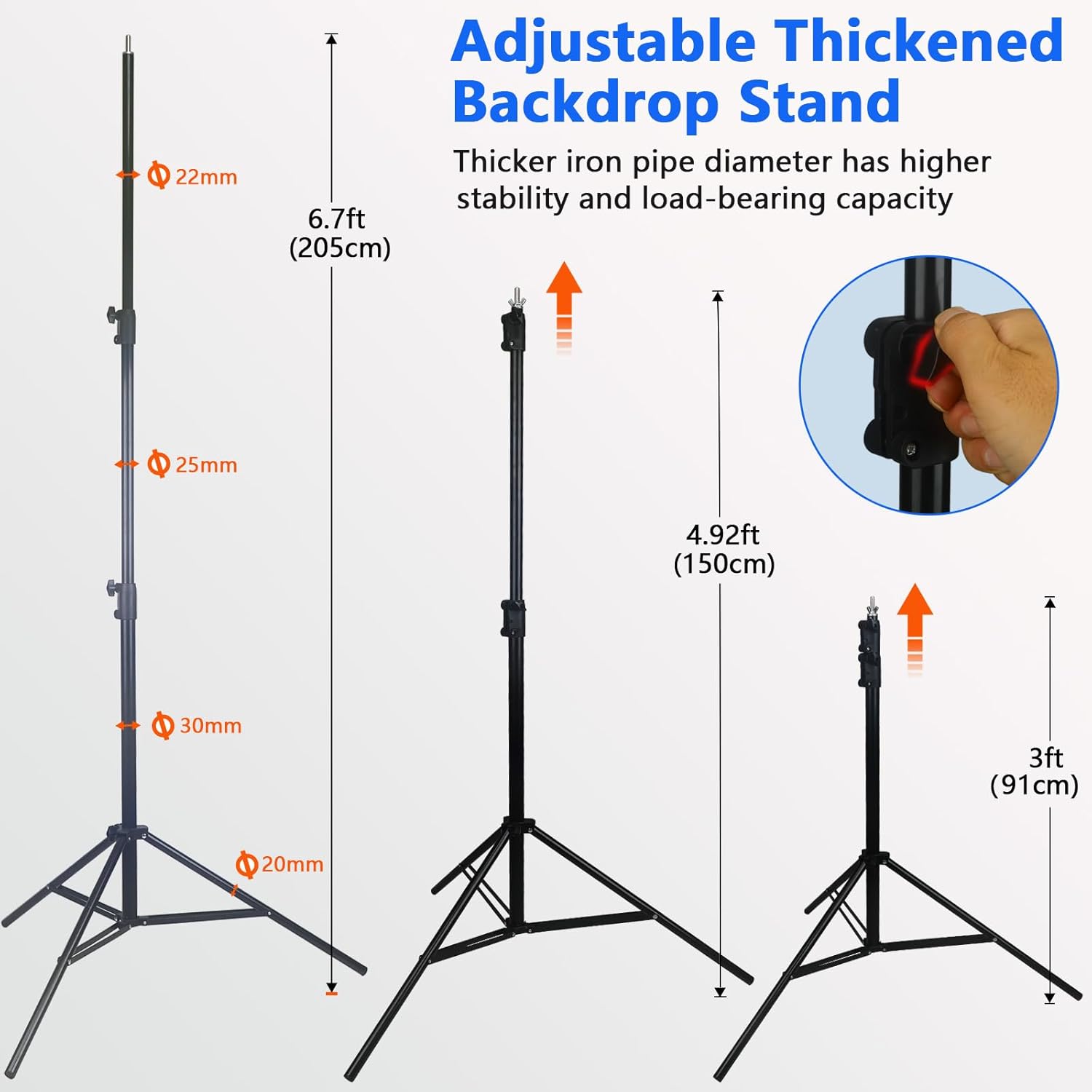 Engineered for the professional, this heavy-duty backdrop stand is constructed from premium aluminum alloy, making it both incredibly strong and lightweight. The reinforced iron joints provide superior stability, supporting up to 8.8 lbs of canvas, muslin, or paper backdrops.