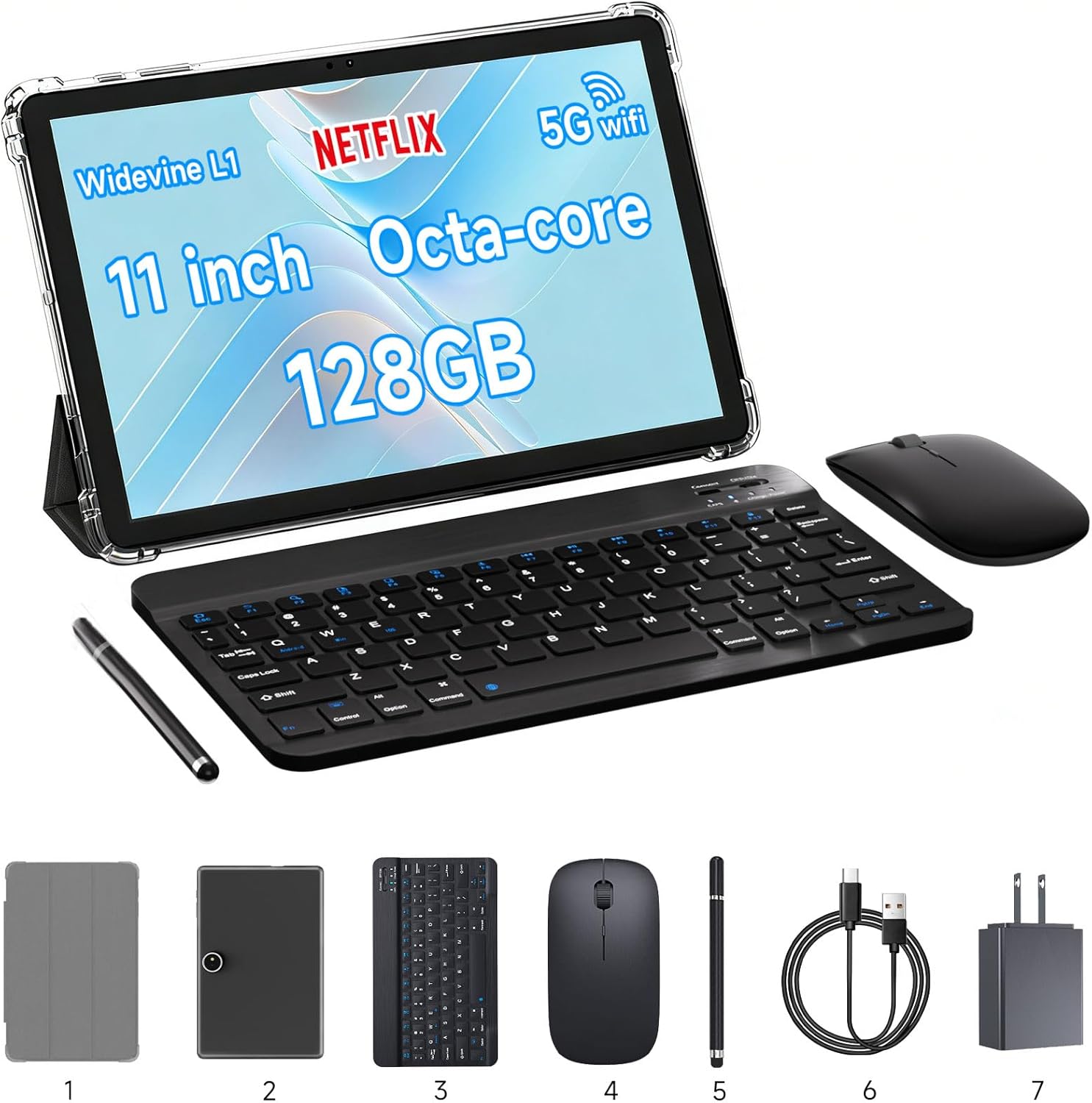 【2 in 1 Tablet】 tablet with Foldable upright Case Bluetooth Wireless Mouse Stylus pen keyboard and more, In order to provide convenience for your work, life and entertainment, you can switch three modes of use at any time, 128GB ROM With Google Play pre-installed, you can download apps like Facebook, Twitter, Instagram, and more. This is for Family, Students, Business people, Writers with the best gift.