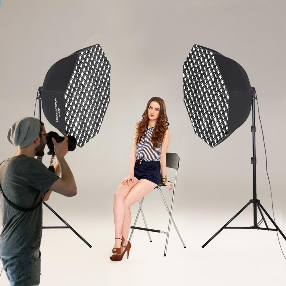 GSKAIWEN Octagonal Softbox Light with Honeycomb Grib (2 Pack ) for Recording, Portraits, Product photography, Live Streaming