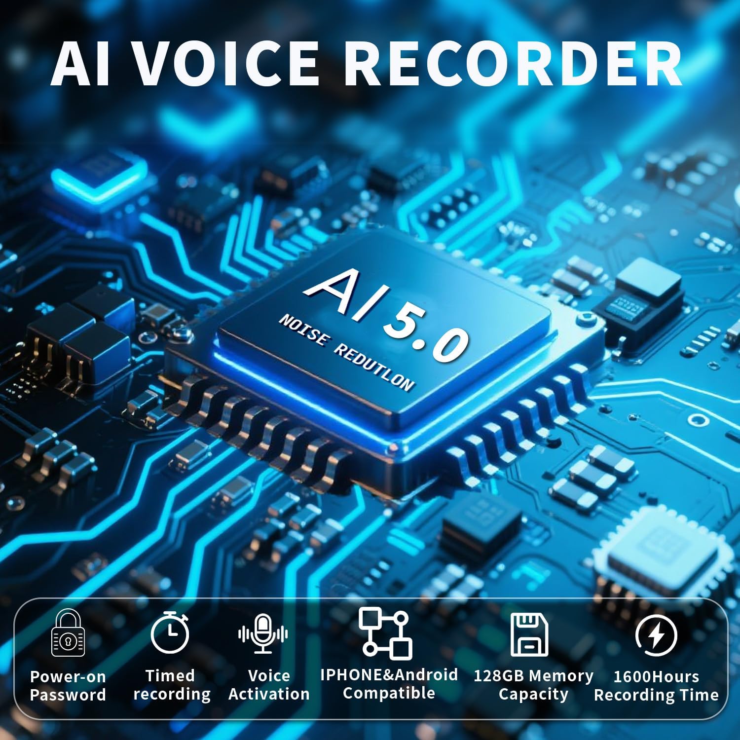 128GB Noise Reduction Voice Activated Recorder,Portable mini Recording Device,Power-on Password,Digital-Voice-Recorder with Playback,Timed Recording,Conference/Lecture/Classroom Learning
