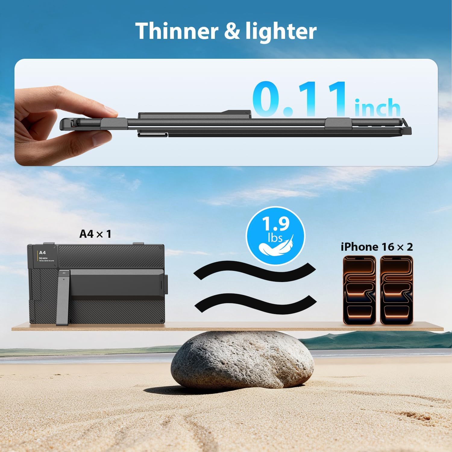 2026 Great upgrade- This 2026 14‘’ laptop monitor extender features an upgraded zero-contact frame design for scratch-free laptop screen protection. The sliding support arm can be extended to be compatible with 13-16” laptops (diagonal size). It has a minimalist hidden structure—lightweight, good-looking and ready to carry with one hand anytime.