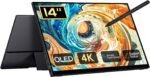 Price: (as of – Details) Product description 1 OLED 2 400+ Nits 3 Eye-care 1 Support Stylus 2 Active Pen … Continue reading 14″ Portable Monitor OLED 4K, Touch Screen Monitor UHD 3840X2400p 100% DCI-P3 100000:1, with Kickstand & Sleeve, USB-C HDMI External for Laptop Mac PC