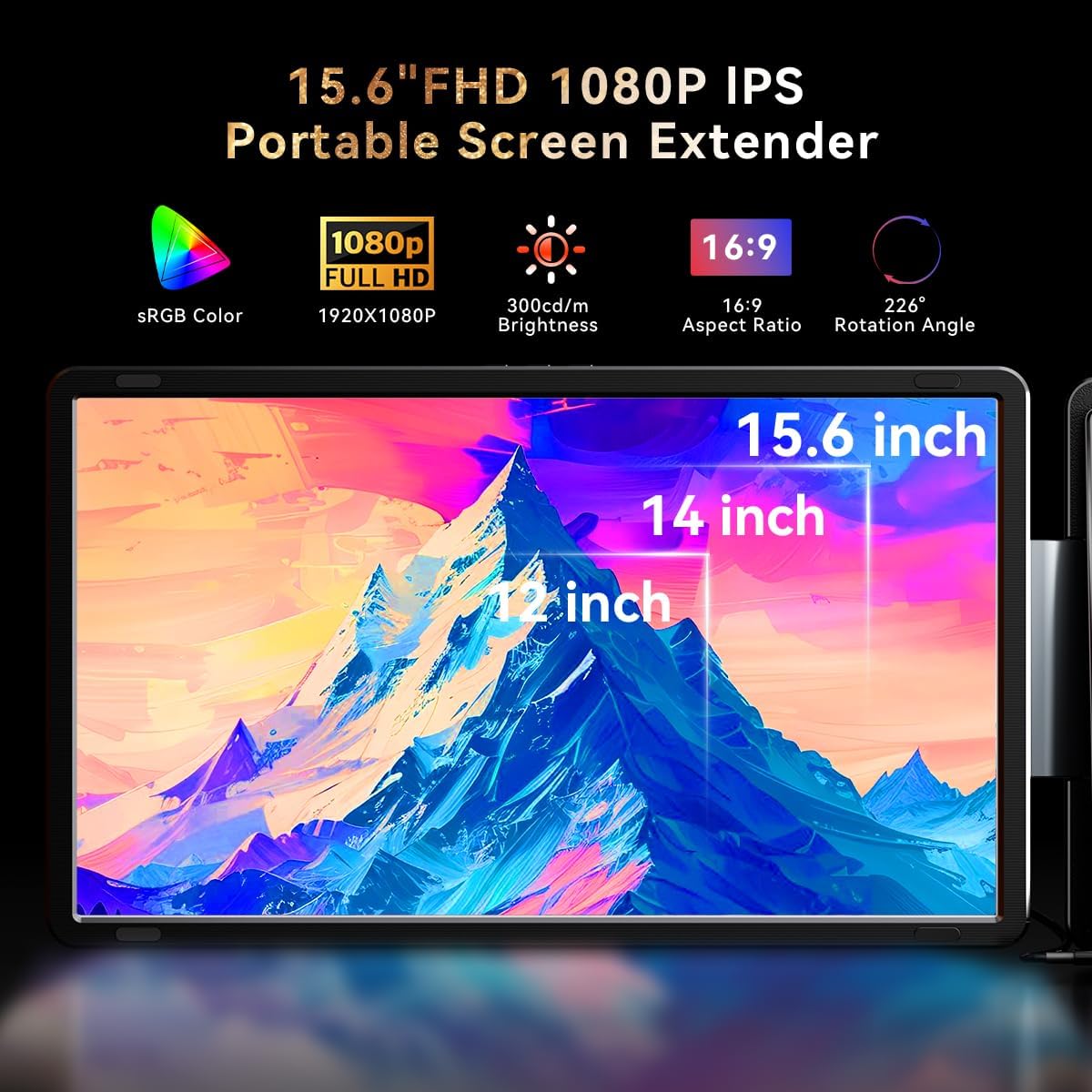 15.6″ Detachable Laptop Screen Extender, FHD 1080P IPS Dual/Triple Portable Monitor for Laptop, USB-C/HDMI Plug & Play, Multi/Extra Travel Display Computer Monitor for 12-18.5″ Win/Mac/Android-S9H