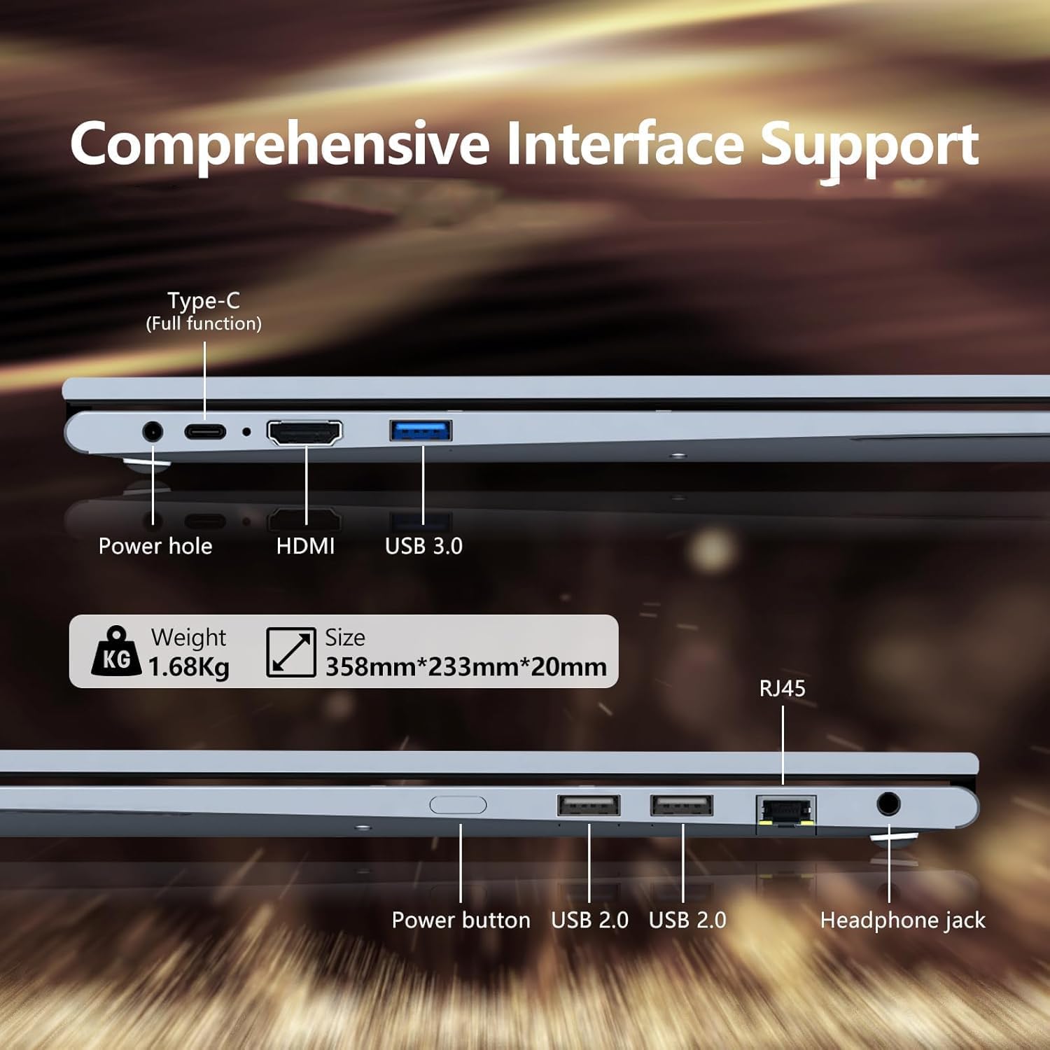 【Ports & Accessories】Notebook PC equip FULL function Type-c * 1, RJ45 * 1, USB 2.0 * 2, USB 3.0 * 1,HDMI * 1, 3.5mm standard headphone jack * 1,you can easily connect to various devices and peripherals to expand your capabilities.