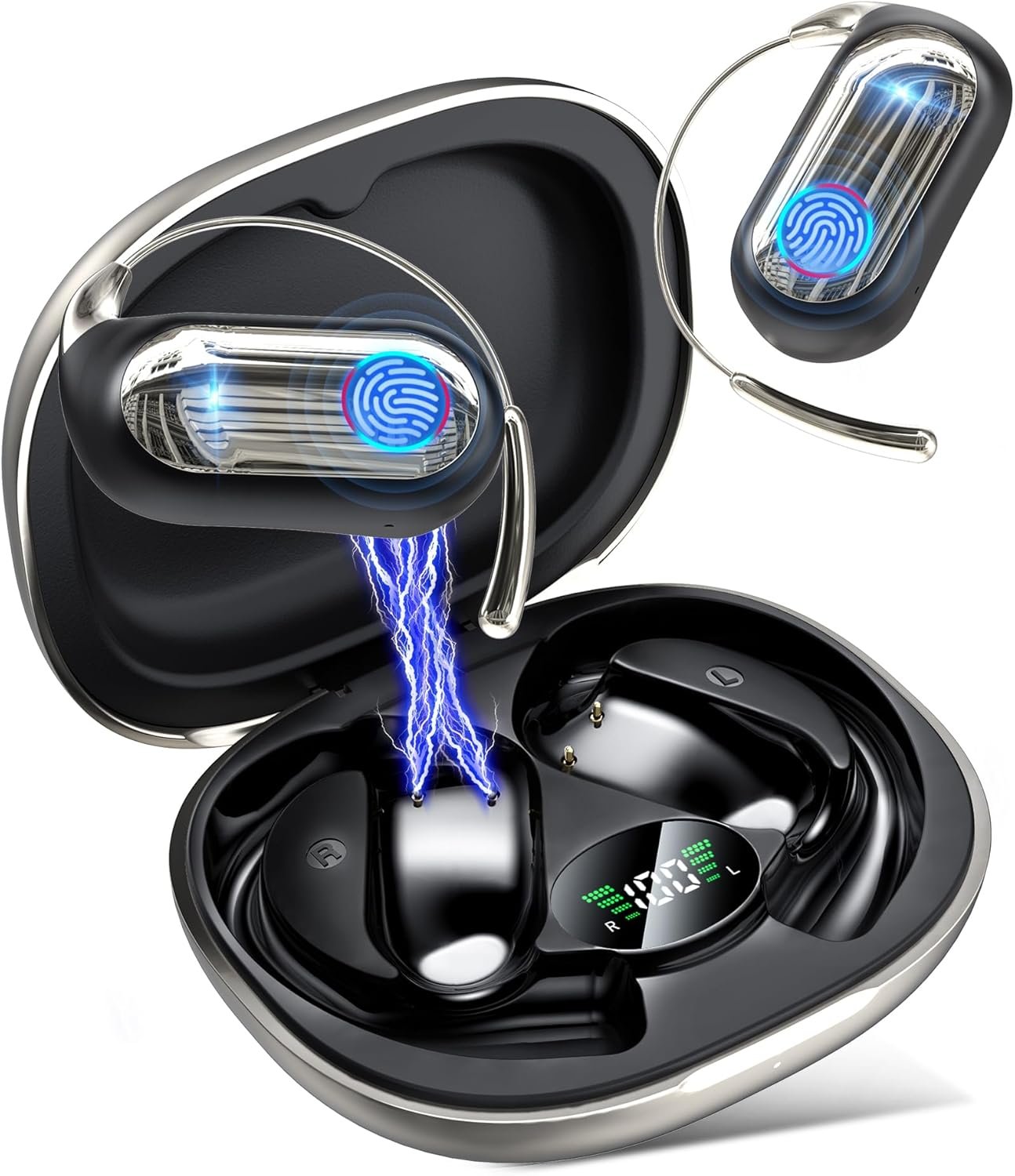 Futuristic AI Translator Earbuds: Step into the future with next-gen translation earbuds that redefine global communication. Effortlessly switch between real-time translation, crystal-clear calls, and premium music with one sleek device. Engineered for comfort and style, the ultra-lightweight design hugs your ears for all-day use, while smart touch controls put powerful features at your fingertips. Your ultimate tool for travel, business, and beyond.