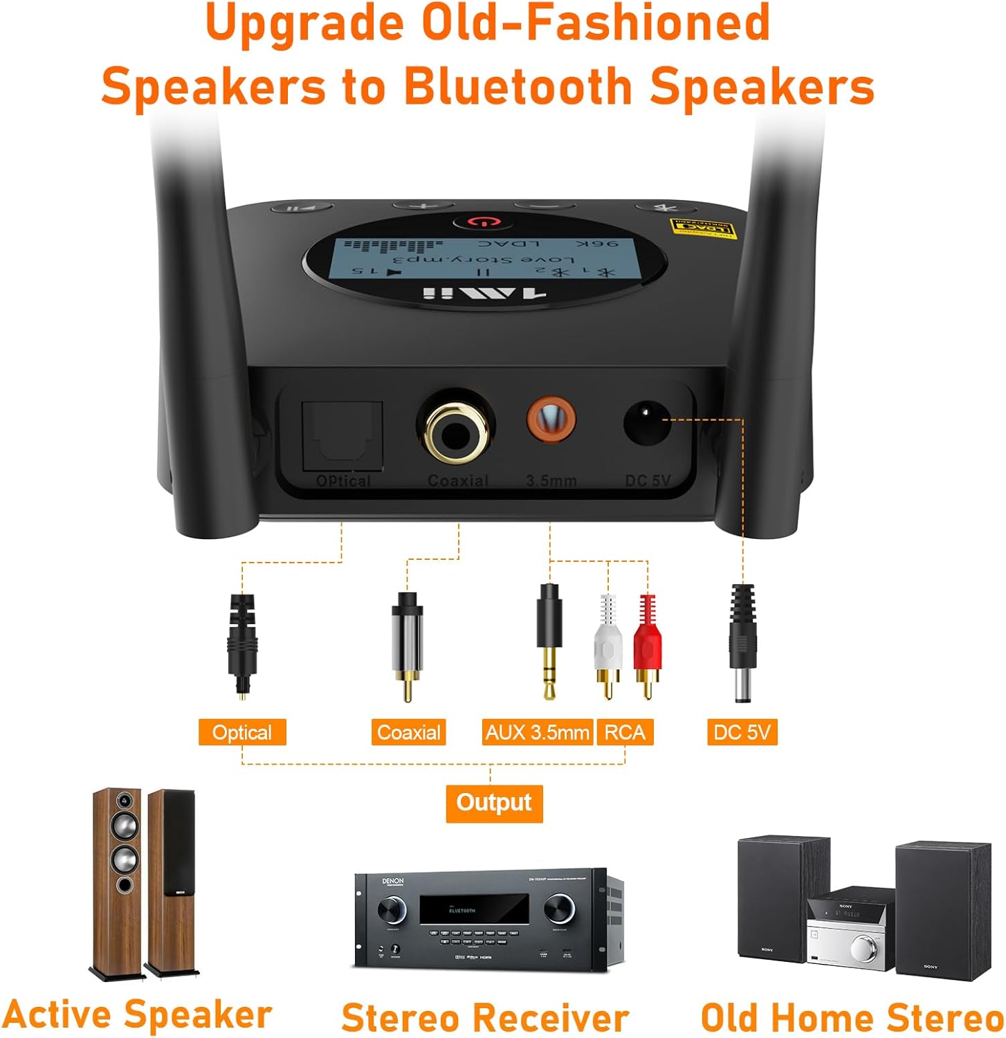 【Easy Setup】 Easy plug, pair and play. Plug into computer speakers, home stereo systems or other speaker systems via the standard 3.5mm, coaxial or optical cable, then pair the Bluetooth receiver with the Bluetooth audio devices such as smartphones or tablet. After that, you can enjoy the music. NOTE: This product is a receiver only, NOT a transmitter.