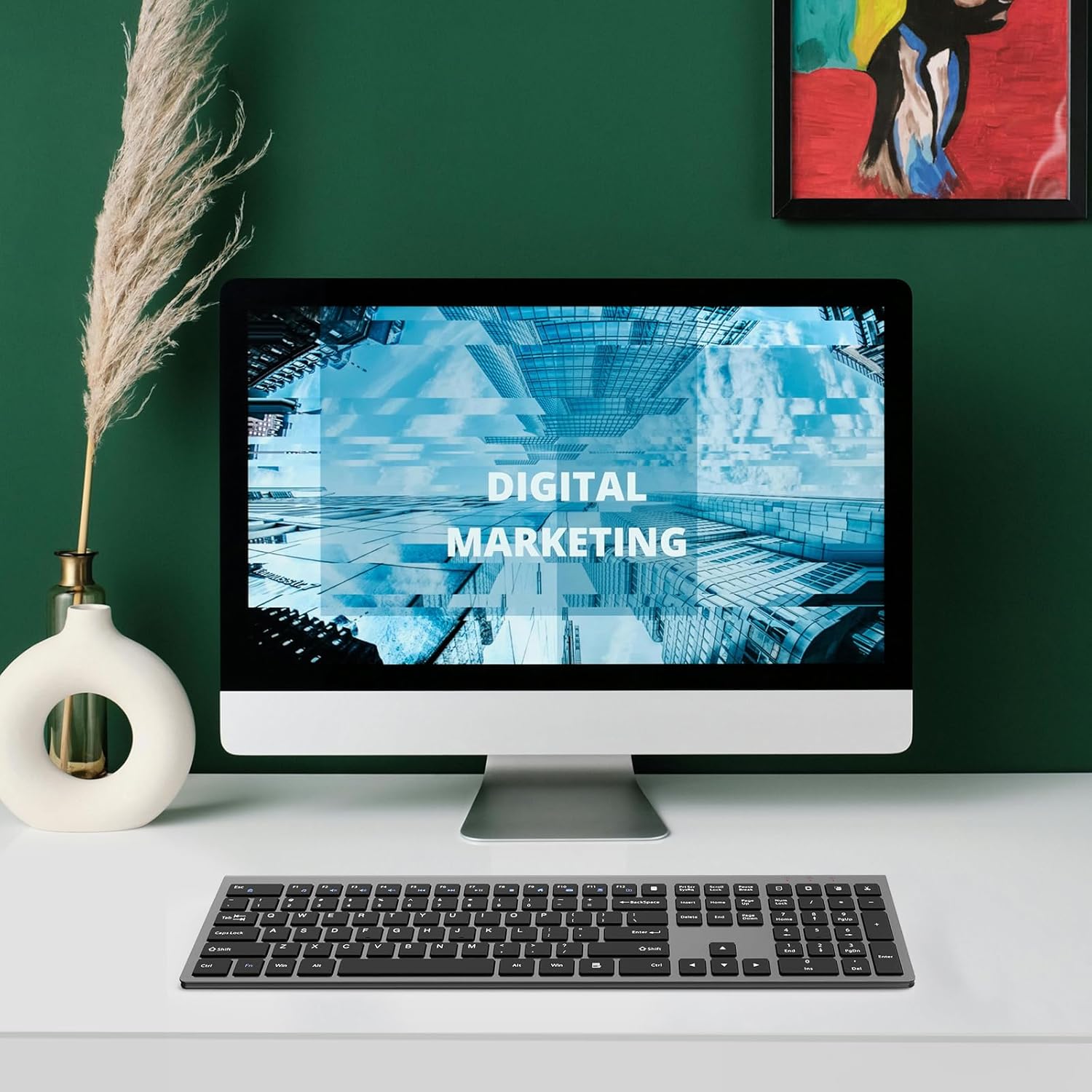 2.4G Wireless Slim Full-Size Keyboard with Numeric Keypad, Calculator Button, USB Receiver, Fn