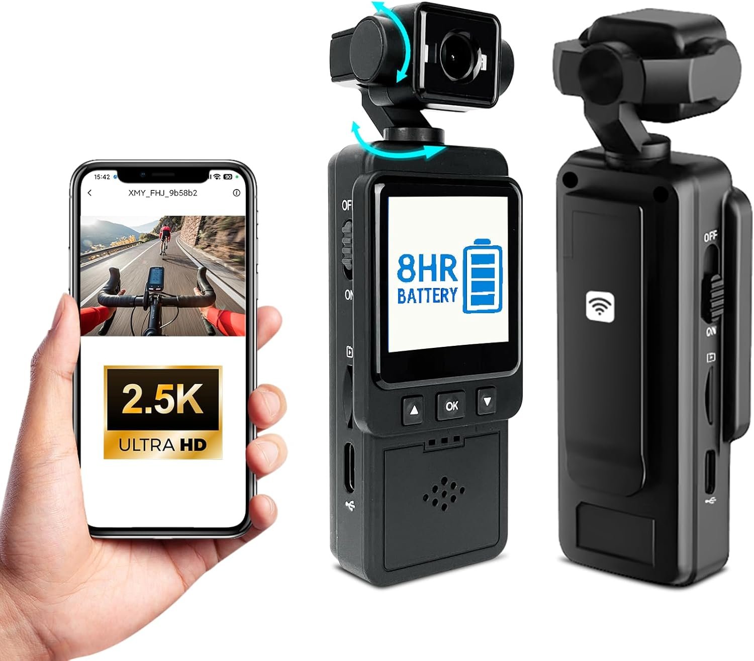 📲WiFi Sync + Real-Time 1.6″ Live Monitor: Connect via WiFi to transfer footage or control the camera remotely—essential for vloggers, travelers, and daily users. The 1.6″ display functions as a real-time monitor, making this the perfect mini video camera recorder for framing shots, checking angles, or reviewing clips instantly. More convenient than typical Body Cameras, this setup brings pro-level viewing to a pocket-sized device.