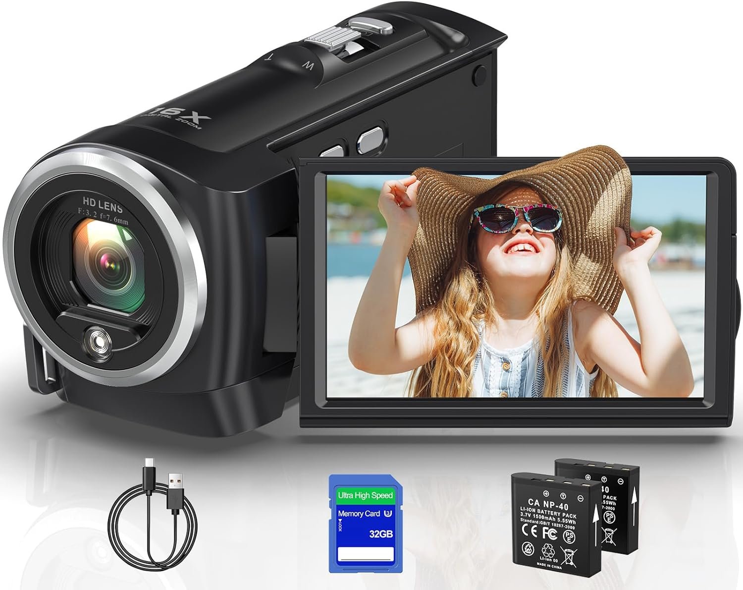 【Multifunctional Camcorder】This versatile video camera features an LCD screen with 270° rotation, anti-shake, face detection, self-timer, continuous shooting, image stabilization, multiple scene modes, webcam functionality, USB 2.0, and more. Lightweight and portable, the camcorder is perfect for capturing beautiful moments anytime, anywhere, making it an excellent gift for family and friends.