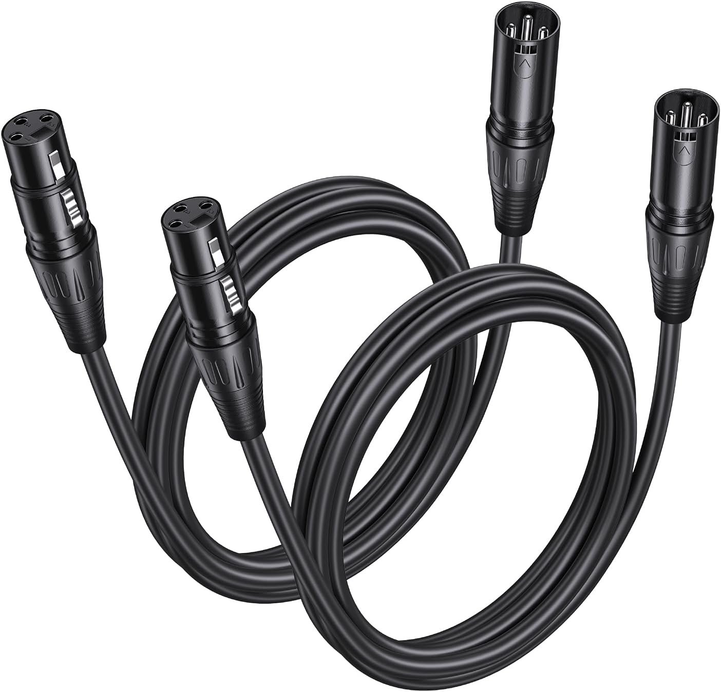 2 Pack Premium XLR Cable – 6ft, Male to Female Microphone Cable Oxygen-Free Copper (OFC) Mic Cord for Speaker Podcast Audio Mixer DMX Effector Amplifier Sound Card, Black