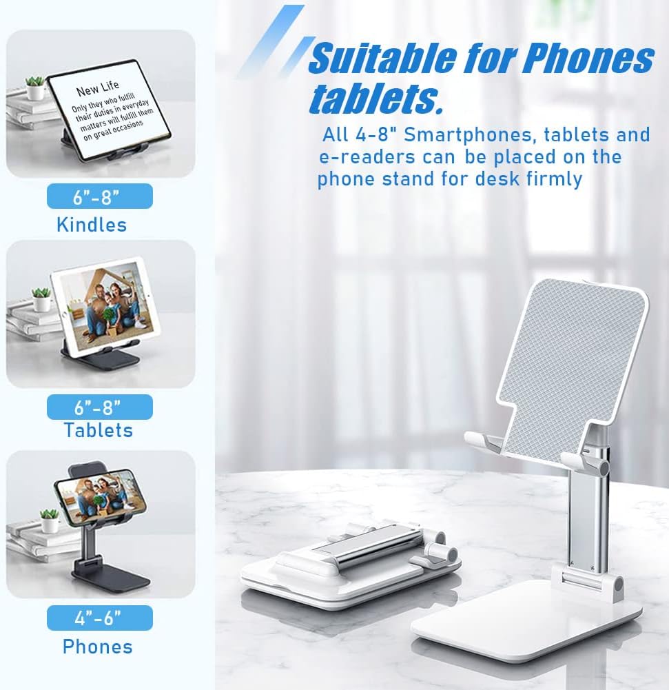 Foldable & Adjustable: This phone stand can be adjusted angle & height(4.6”-6.5”) to help you find the comfortable position, offers a fabulous viewing when using Face-time and watching films. Good for home and office