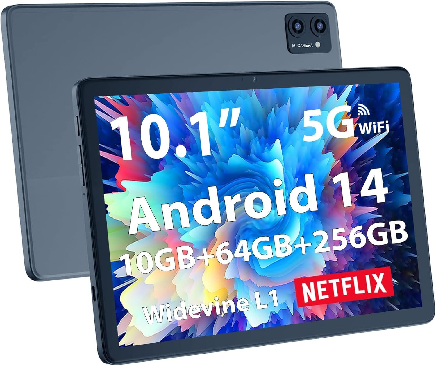 2025 Android Tablet, 10.1″ Android 14 Tablets with Octa-Core, 10GB+64GB, 6000mAh Battery, 5MP+8MP Camera, 800 * 1280 IPS HD Display, WiFi & Bluetooth, for Christmas