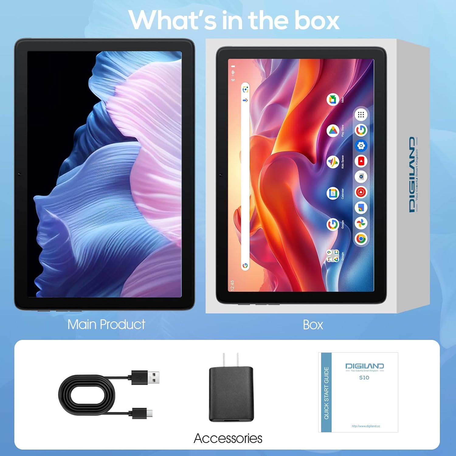 【10-inch HD Touchscreen】Featuring a 1280×800 low blue light LCD display, the tablet delivers sharp and vibrant visuals, perfect for video streaming, web browsing, and comfortable reading.
