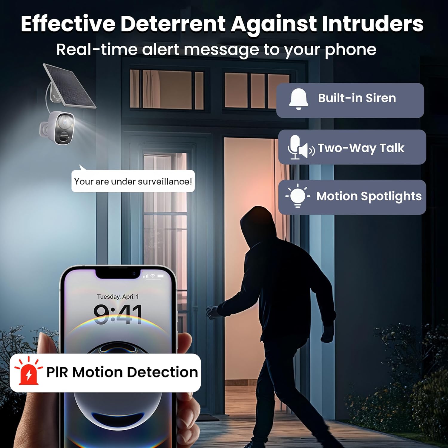 【Two-Way Audio – Communicate in Real-Time】Featuring a built-in high-quality microphone and speaker, this wireless outdoor camera enables seamless two-way audio through the app. Whether you’re greeting visitors, speaking with delivery personnel, or warning intruders, you can communicate easily and securely from anywhere.