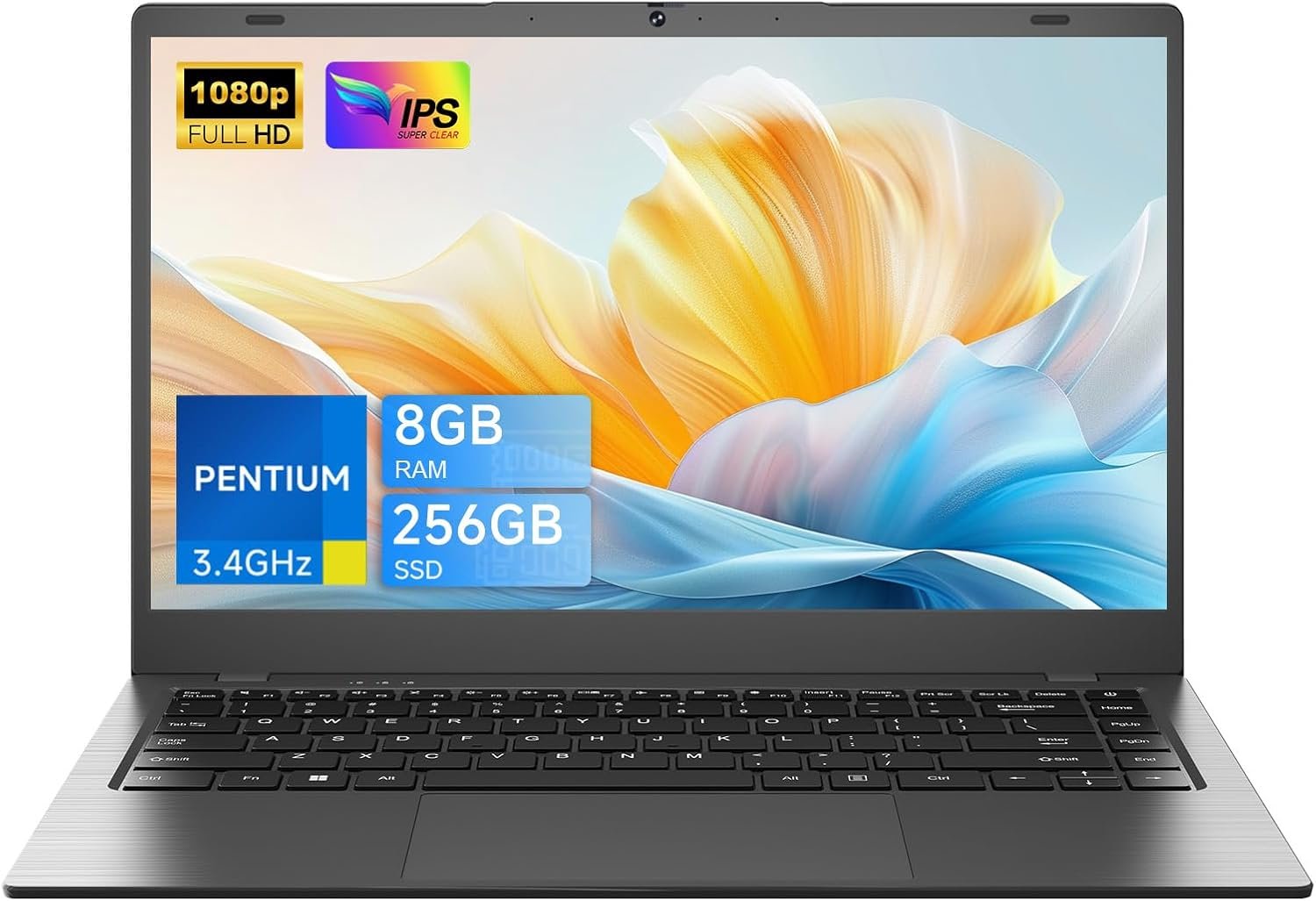 2026 Laptop Computer, Gold Pentium Processor (Up to 3.4GHz), 8GB RAM 256GB SSD(Expandable to 1TB), 1080P IPS FHD, 38WH, USB3.2, Type-C, HDMI, Office Suit, Win11 Laptop, Notebook Laptops