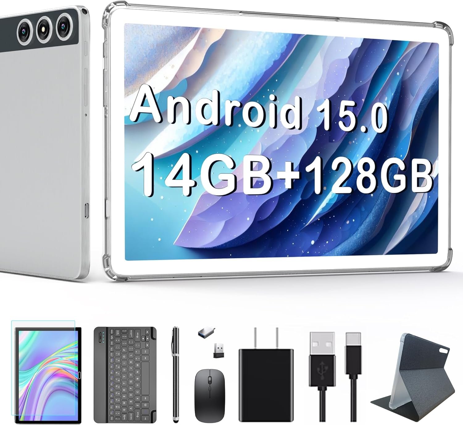 2026 Latest Android 15 Tablet, 10 inch Tablet with 128GB Storage 1TB Expandable 14GB RAM, Dual 4G Cellular Tablets with keyboard Support 5Ghz WiFi/Bluetooth 5.0, Octa-Core Processor, FHD IPS Screen