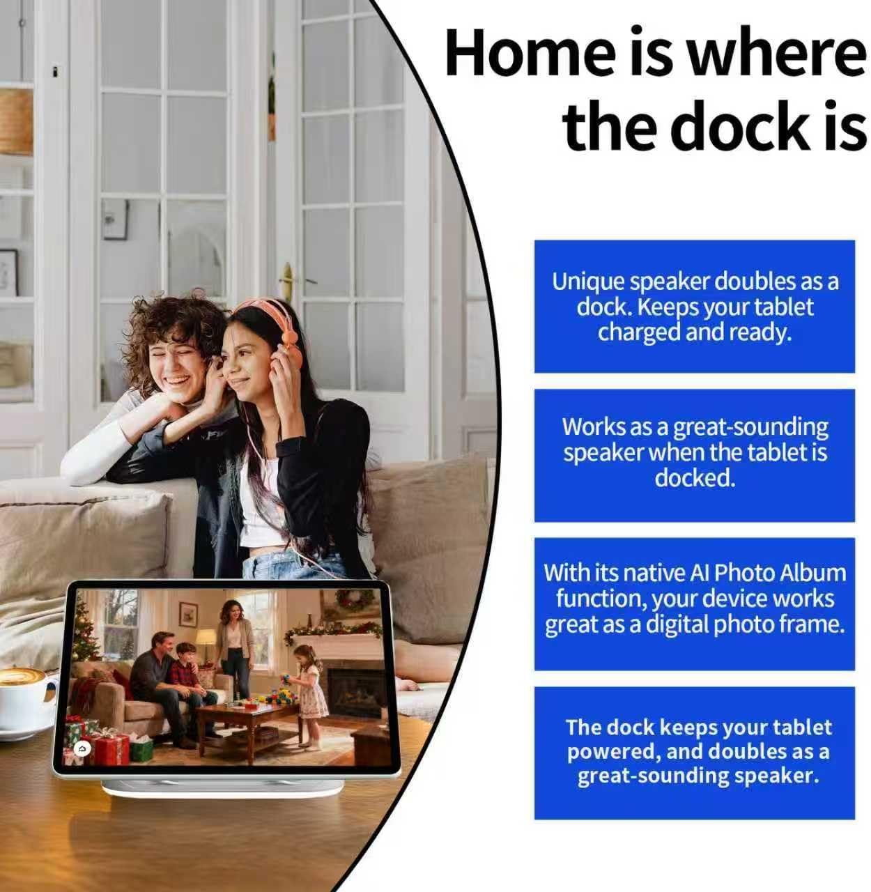 🎵【All-in-One AI Stereo Speaker Dock】Transform your Jeazans tablet into a multifunctional hub with the AI Smart Speaker Dock. Keeps it charged and ready 24/7 and doubles as a great-sounding speaker for room-filling music while ambient lights sync with your music for an immersive audio-visual experience. Dive into relaxation with 8 built-in white noise environments, or switch to the AUMI AI OS clock screensaver mode to use it as a digital clock. It doubles as an electronic cloud photo frame, showcasing your favorite memories. Combining charging, entertainment, and utility, this dock redefines tablet accessories.