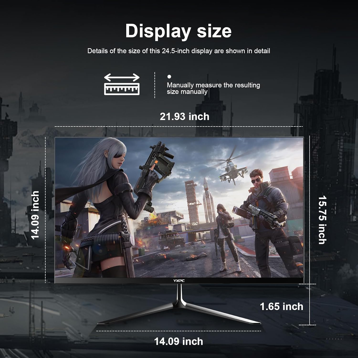 24.5 inch Gaming PC Monitor 200Hz, FHD 1080p VA screen, Built-in speakers,1ms without Bezel, freesync, 99% sRGB, HDR400,178 ° Angle View, HDMI,DisplayPort, Compatible with wall mounting 75*75MM