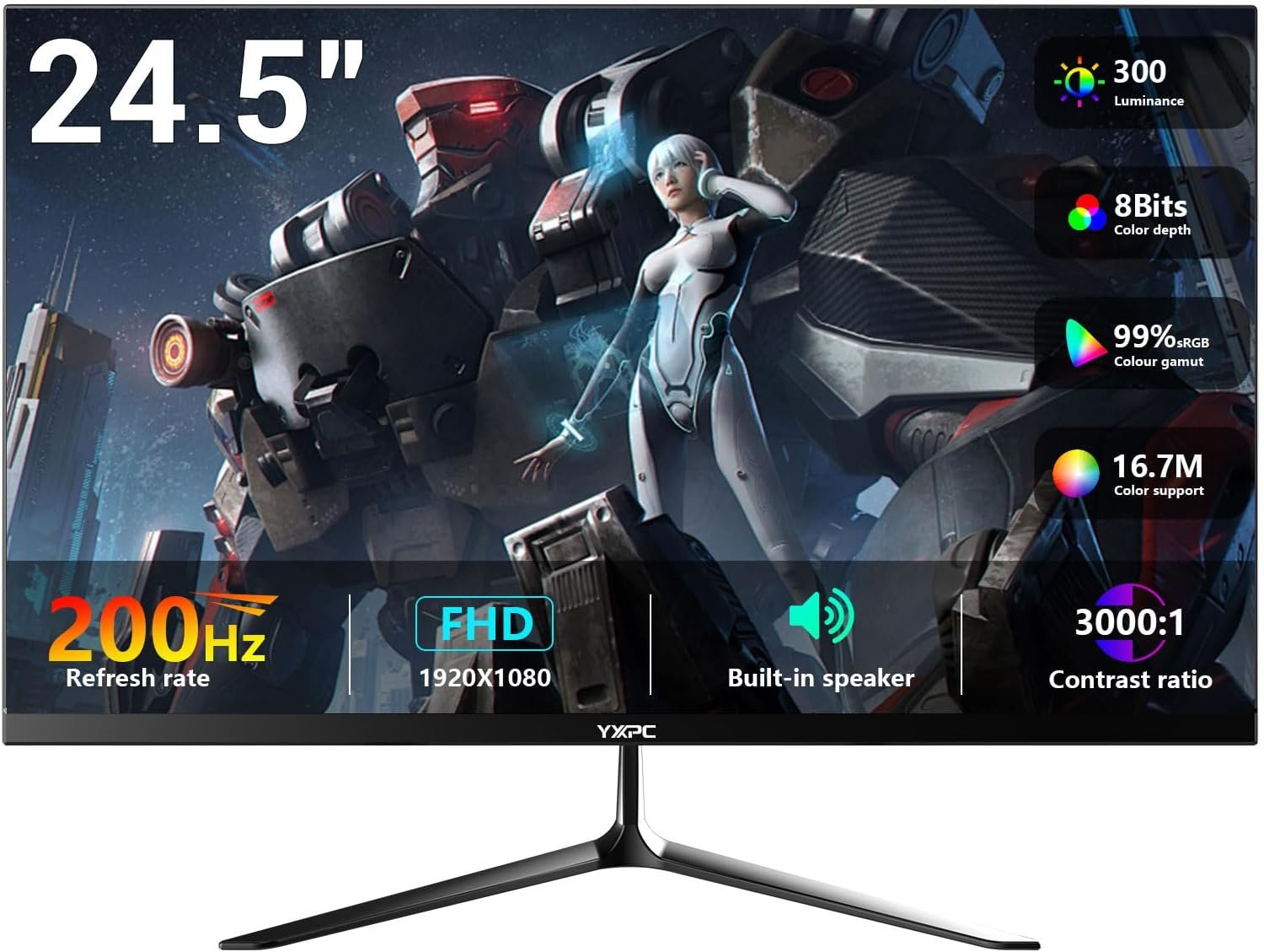 24.5 inch Gaming PC Monitor 200Hz, FHD 1080p VA screen, Built-in speakers,1ms without Bezel, freesync, 99% sRGB, HDR400,178 ° Angle View, HDMI,DisplayPort, Compatible with wall mounting 75*75MM