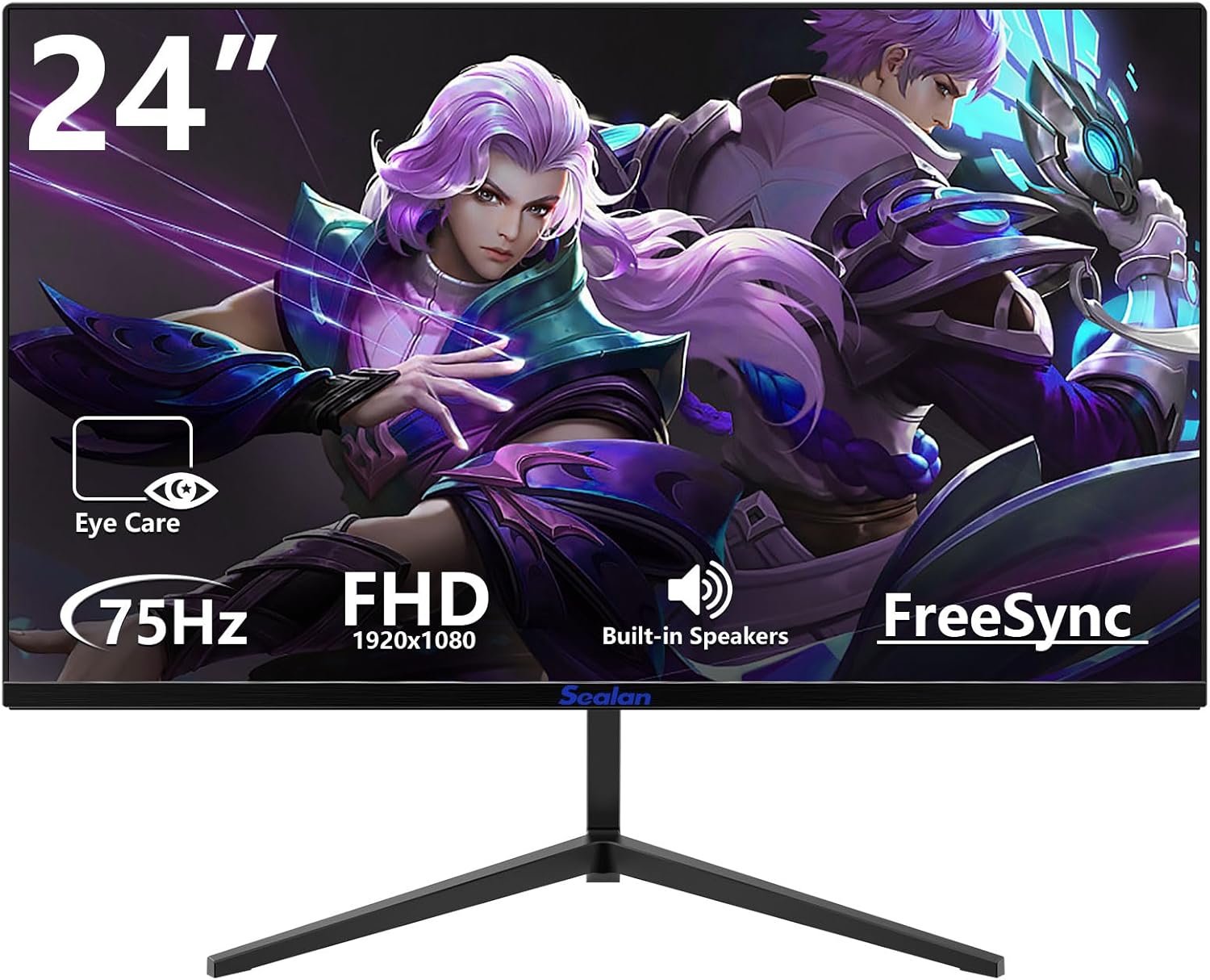 Crystal-Clear Visuals: This 24 inch gaming monitor by Sealan boasts a stunning FHD 1920 x 1080 VA panel delivering over 16.7 million accurate colors with 99% sRGB wide color gamut. Dive into vivid, detailed visuals with exceptional color accuracy and consistency from all angles.