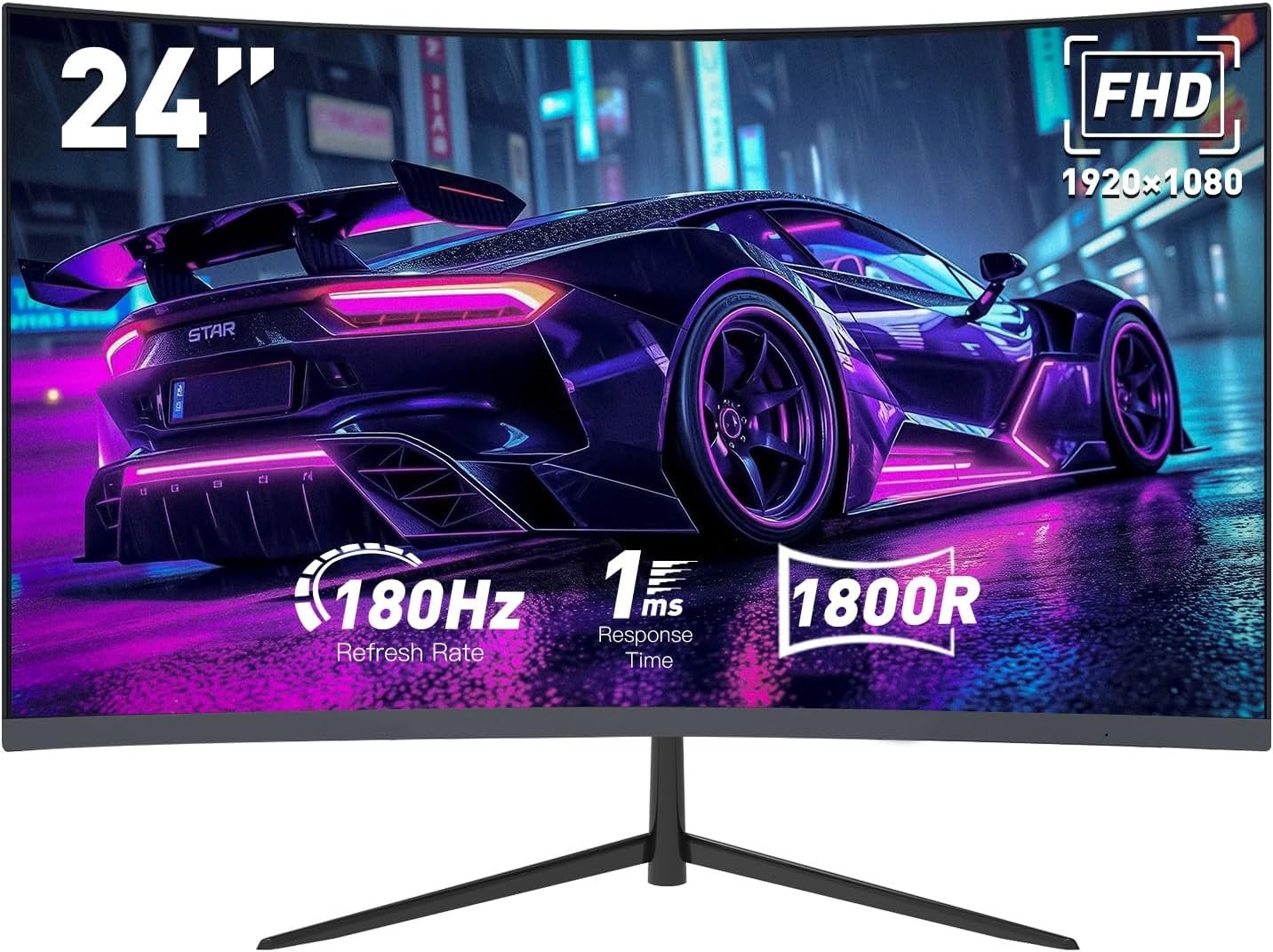 24-inch Curved Gaming Monitor, FHD 180Hz 1ms Computer Monitor, 1800R, AMD FreeSync & G-Sync Compatible, HDMI DP VESA Built-in Speakers
