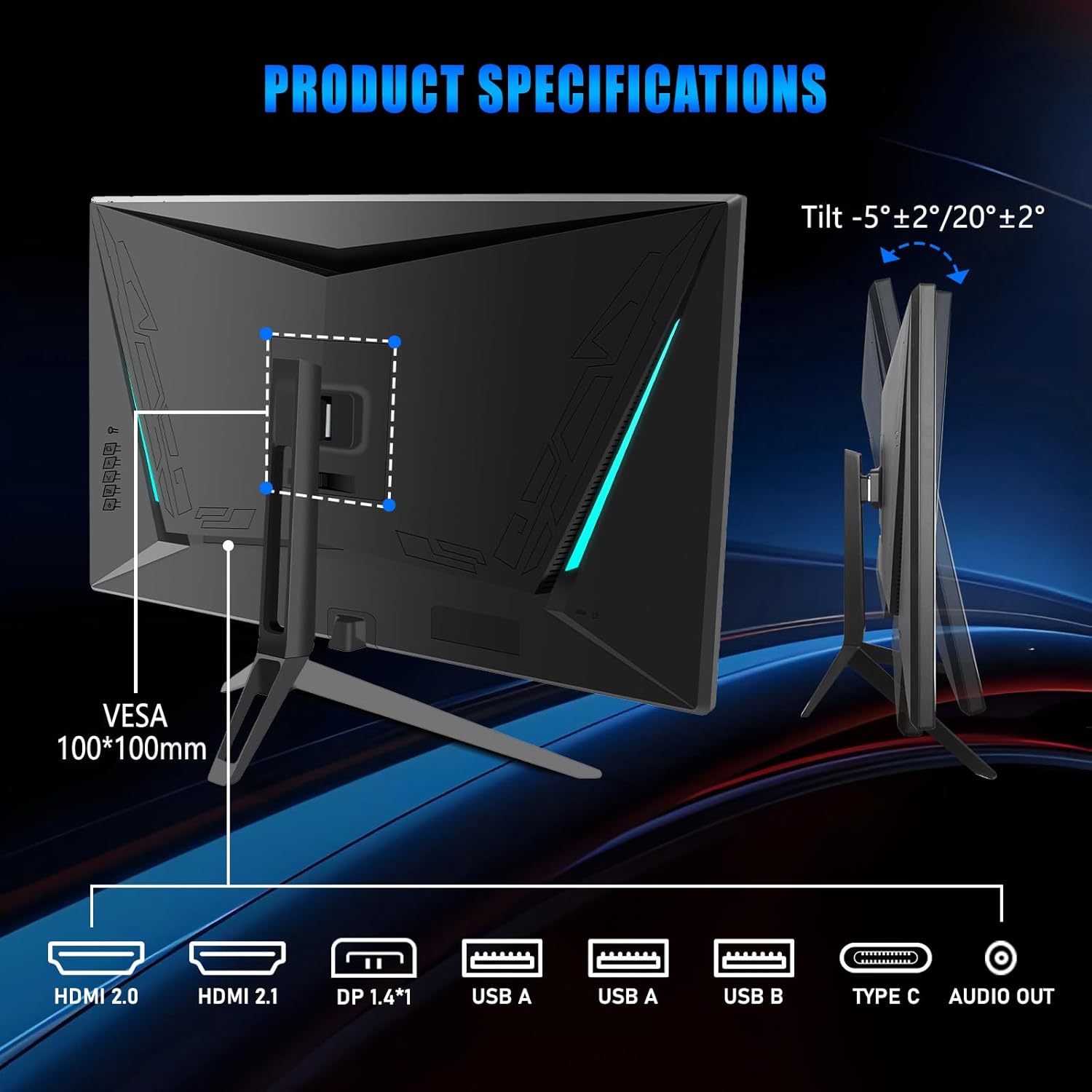 【Versatile Connectivity & Mount Compatibility】 28-inch 4K gaming monitor offers HDMI×2, USB×2, and Type-C ports for gaming device connectivity. VESA 100×100 mount compatibility allows flexible wall mounting, optimizing gaming workspace setups.