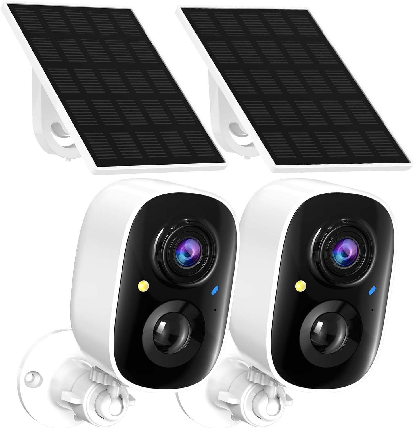 2K FHD WiFi Wireless Cameras Solar Powered,Security Cameras Wireless Outdoor,Outside Camera for Home Security,AI Motion Detection,Color Night Vision,Spotlight,Siren Alarm,SD/Cloud Storage,2 Pack