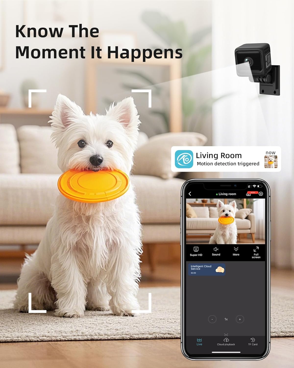 【Instant Motion Alarm & Smart Detection】Use it as a pet camera or to monitor your home. Once detection mode is activated, the camera immediately captures movement and sends an instant alert with a screenshot to your phone. Whether you want to check on your pet or ensure no one has broken into your home, it lets you know immediately and quickly view real-time activity via the app, giving you peace of mind.