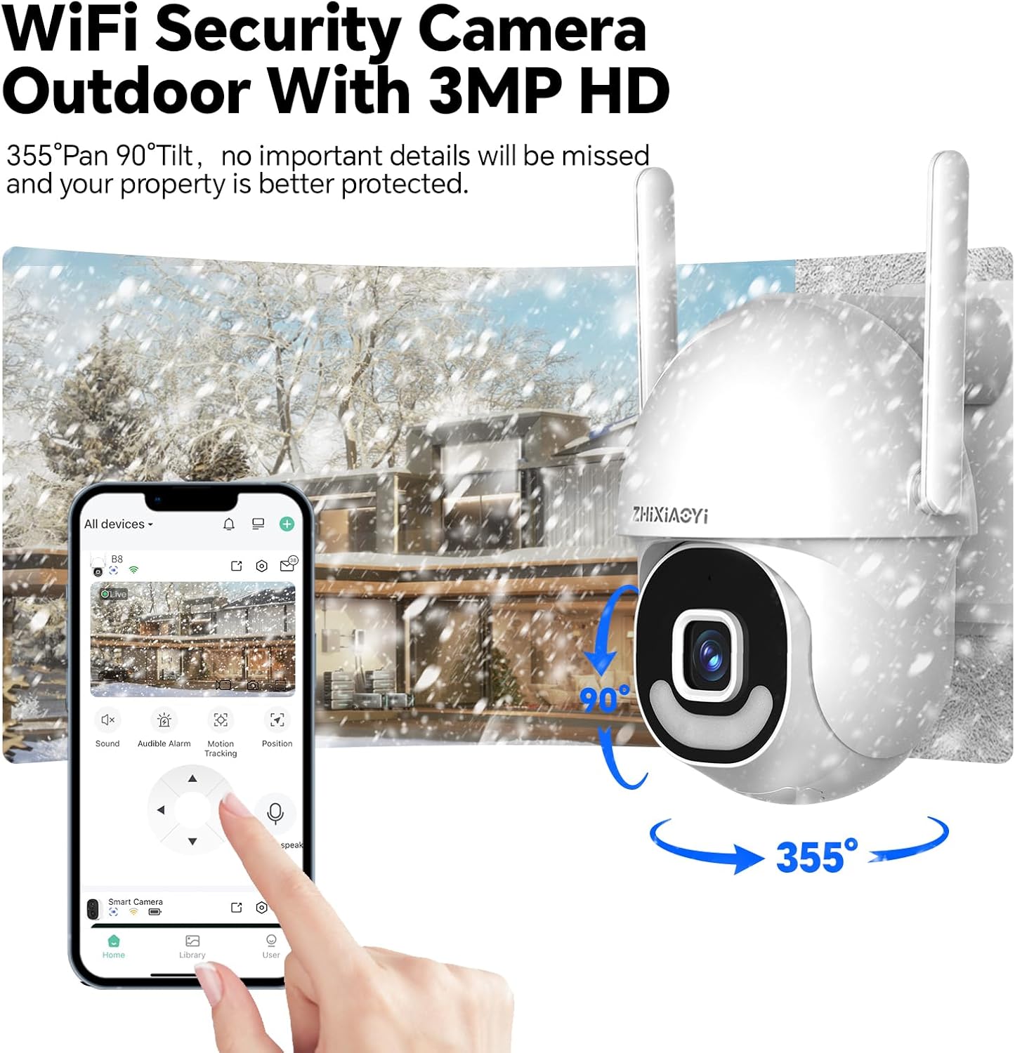 ZHIXIAOYI outdoor camera with 2K resolution provides you with ultra-sharp day and 10M/32FT night images. With a horizontal swivel range of 355° and a vertical swivel range of 90°, this outdoors security camera provides you with 360° protection. Note: works with 2.4Ghz/5Ghz WiFi and requires a power connection.