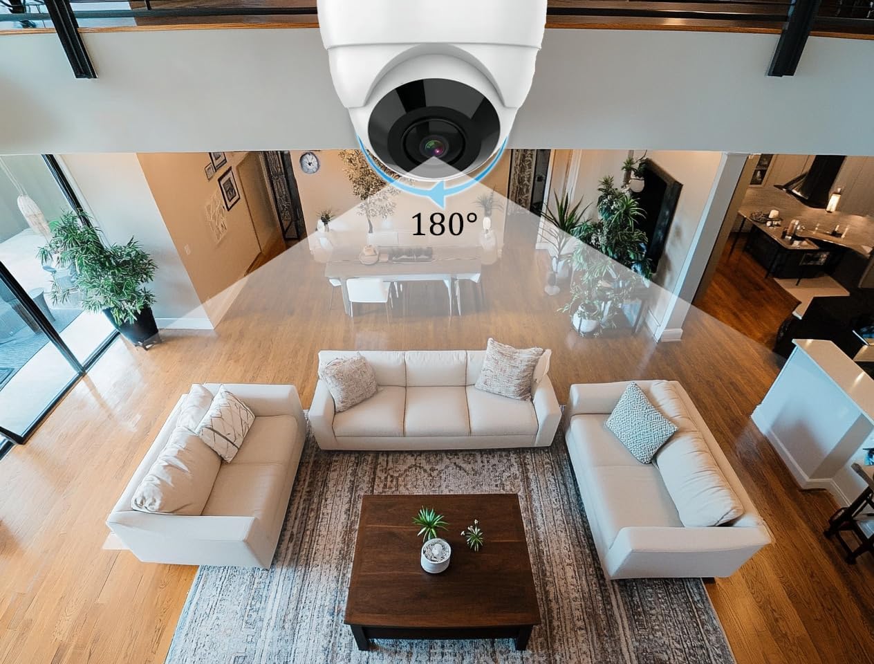 This camera is 2 Megapixels high definition 1080p HD TVI/CVI/AHD/960H(1000 TVL), 30ft IR night vision range. It has a 1.8mm Fixed lens with 180 degree wide Field of View (FOV) to cover large areas