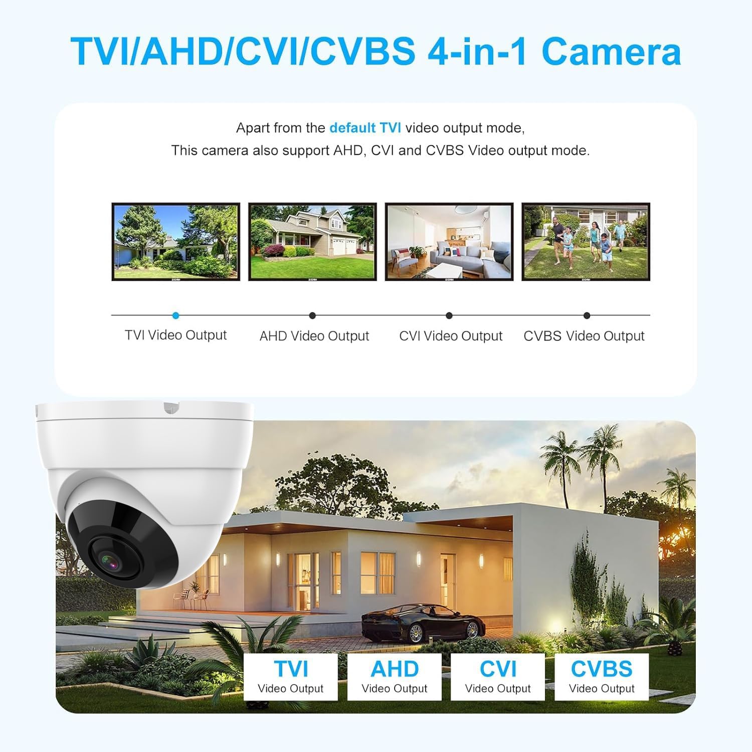This dome camera has 4 Resolution Outputs – Supports 1080P HD-TVI, HD CVI, AHD and 960H 1000TVL. It can work with TVI DVR, CVI DVR, AHD DVR and analog DVR. Default Video output is 1080P AHD Mode, compatible with all DVRs by switching video output mode. Video Mode must be switched according to your 1080P DVR type.