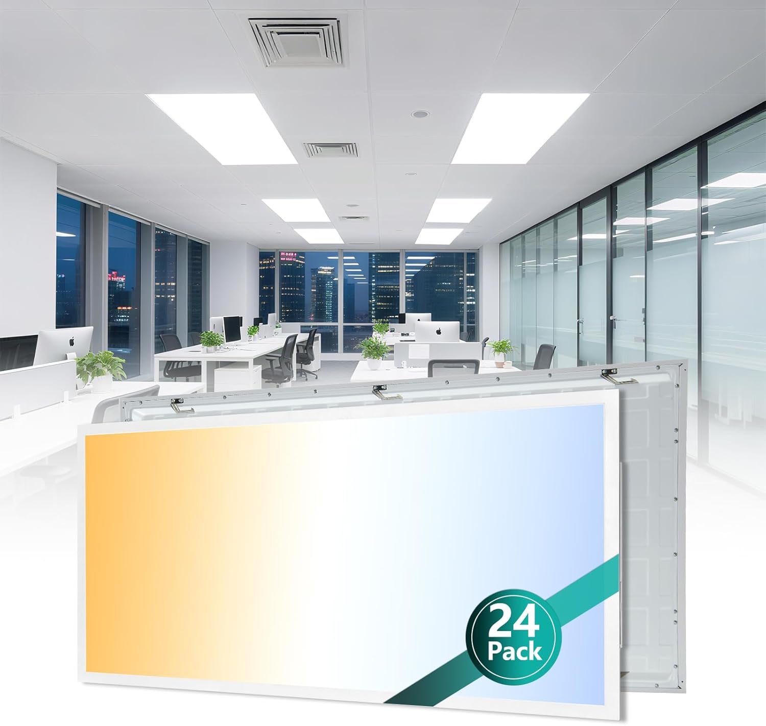2×4 LED Flat Panel Light, 24 Pack, Selectable 40W/50W/60W, 3000K/4000K/5000K/6000K, 0-10V Dimmable, ETL Certified, 6600LM, Drop Ceiling Office Lighting