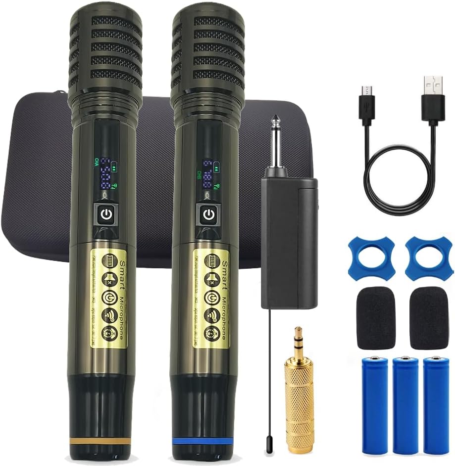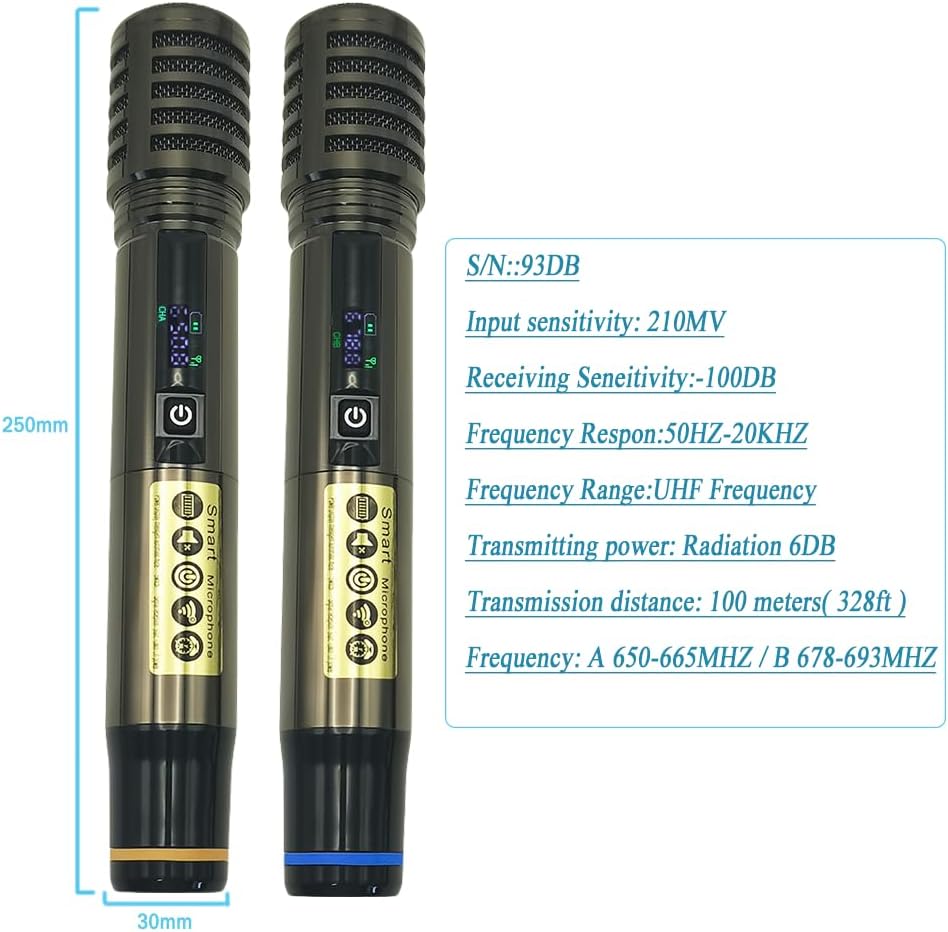 328ft Wireless Microphones,UHF Dual Cordless Metal Dynamic Mic with Rechargeable Receiver,100m Long Range Stable Connection,Karaoke Microphone Set for Singing,Wedding,DJ,Party,Speech,Church,School