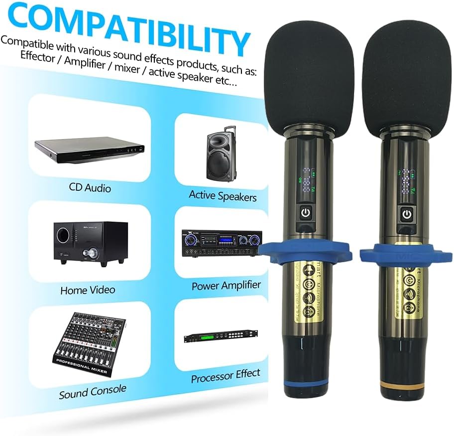 Plug And Play – Easy to connect and play, easy to do without pairing. The singing microphone comes with 1 cordless microphone receiver, just turn on the wireless mic and receiver, they will be matched automatically, no need to match manually. When the match is successful, plug the receiver into a device with a mic input jack and you can use it directly.