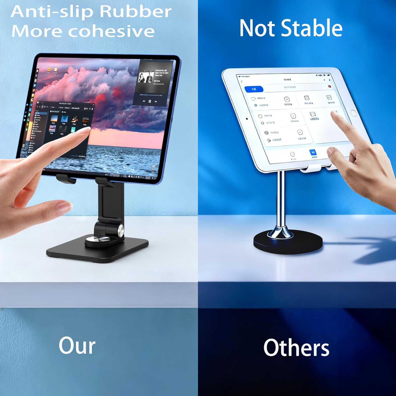 【Height & Angle Adjustable】The Height of the phone stand holder can be simply adjusted(3.5-11 inches), the angle can be adjusted from 0° to 235° by hand. Adjust the holder to choose your angle, vertical or horizontal, and find the best angle for browsing, reading, or gaming without strain