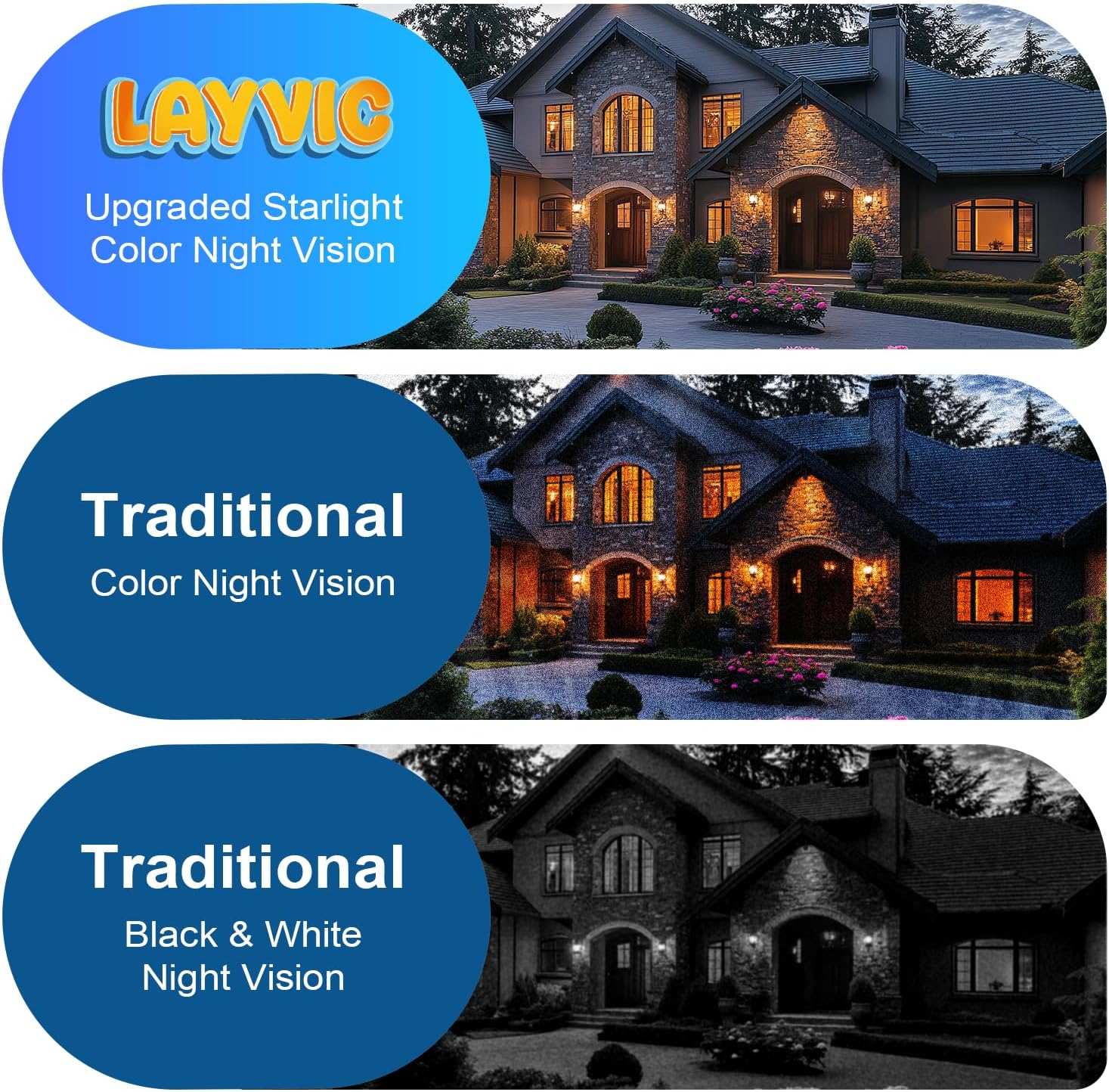 【Full-color Night View】Unlike traditional black-and-white night vision, this indoor security camera uses advanced full color technology to deliver clear color images even in low-light conditions. See every detail in vivid color without glare, without disturbing intruders, providing subtle yet highly efficient surveillance.