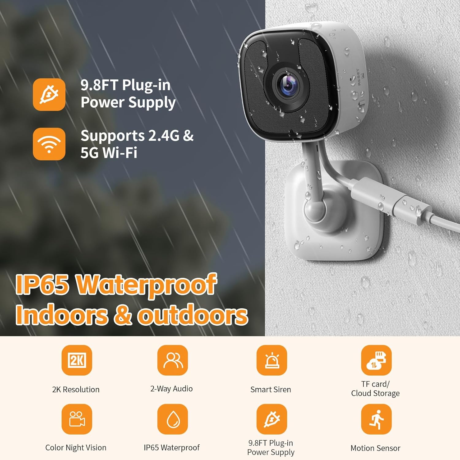 2026 Upgraded Model & IP65 Waterproof: These Window cameras for home security are built for both indoor and outdoor use. With its IP65 waterproof rating, it reliably withstands rain, snow, and dust, allowing you to install it anywhere—from your living room to your garden—perfect for monitoring your entire property in any weather condition.(It’s a Corded Wi-Fi camera and not a battery camera )