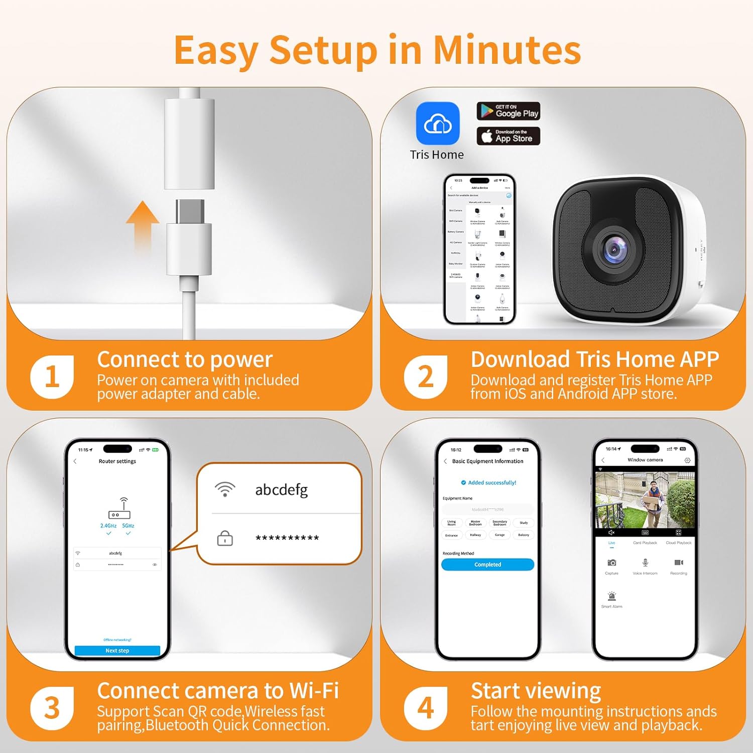 Smart AI Detection & Instant Alerts: These security cameras feature advanced AI human detection to minimize false alarms. Your window camera sends real-time alerts to your phone for any unusual activity, ensuring proactive protection.