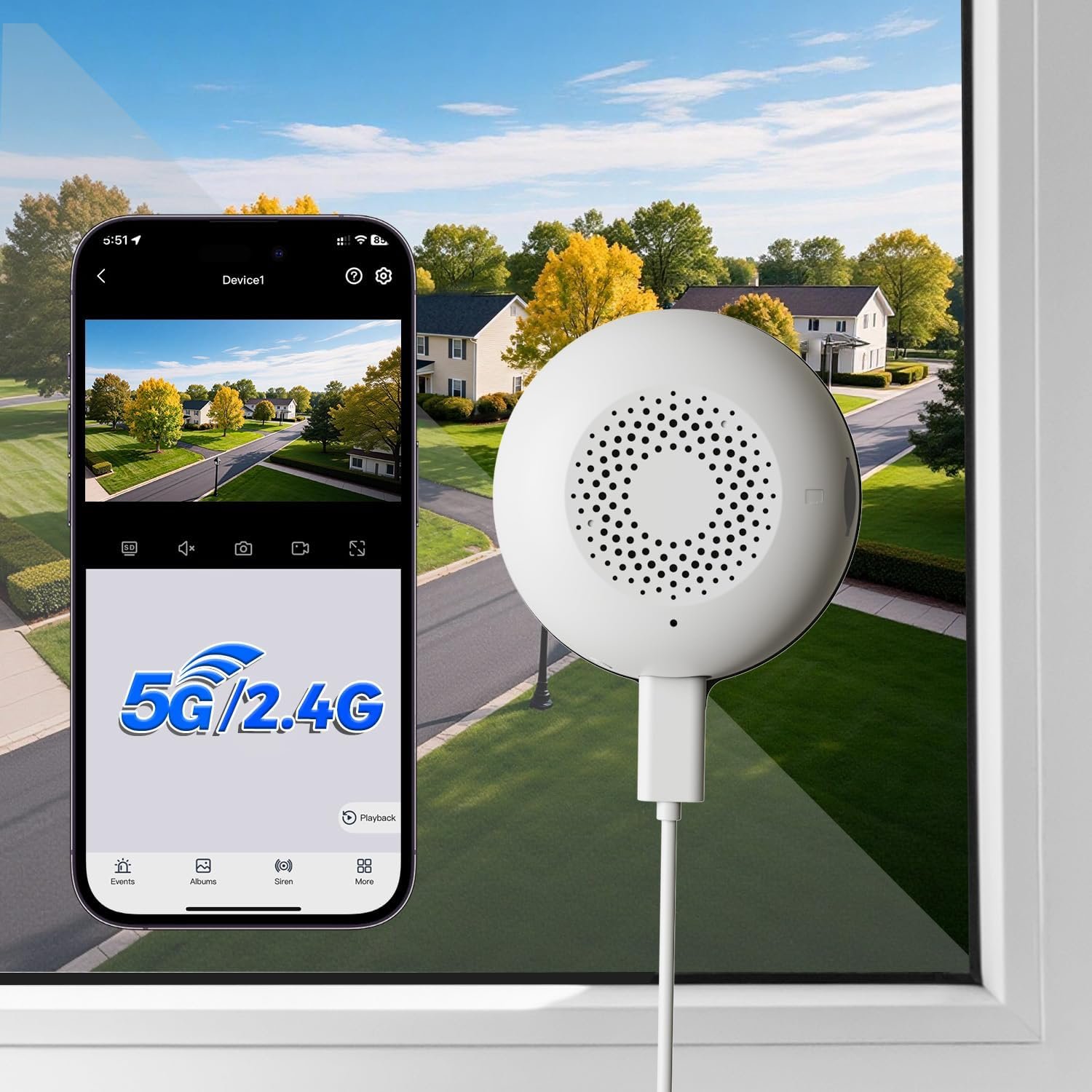 3MP 2K Window Camera, 5G & 2.4GHz WiFi Indoor Camera for Home Security with AI Color Night Vision, 24/7 Recording, Motion Detection, Easy & Quick Window Mount for Outdoor Monitoring