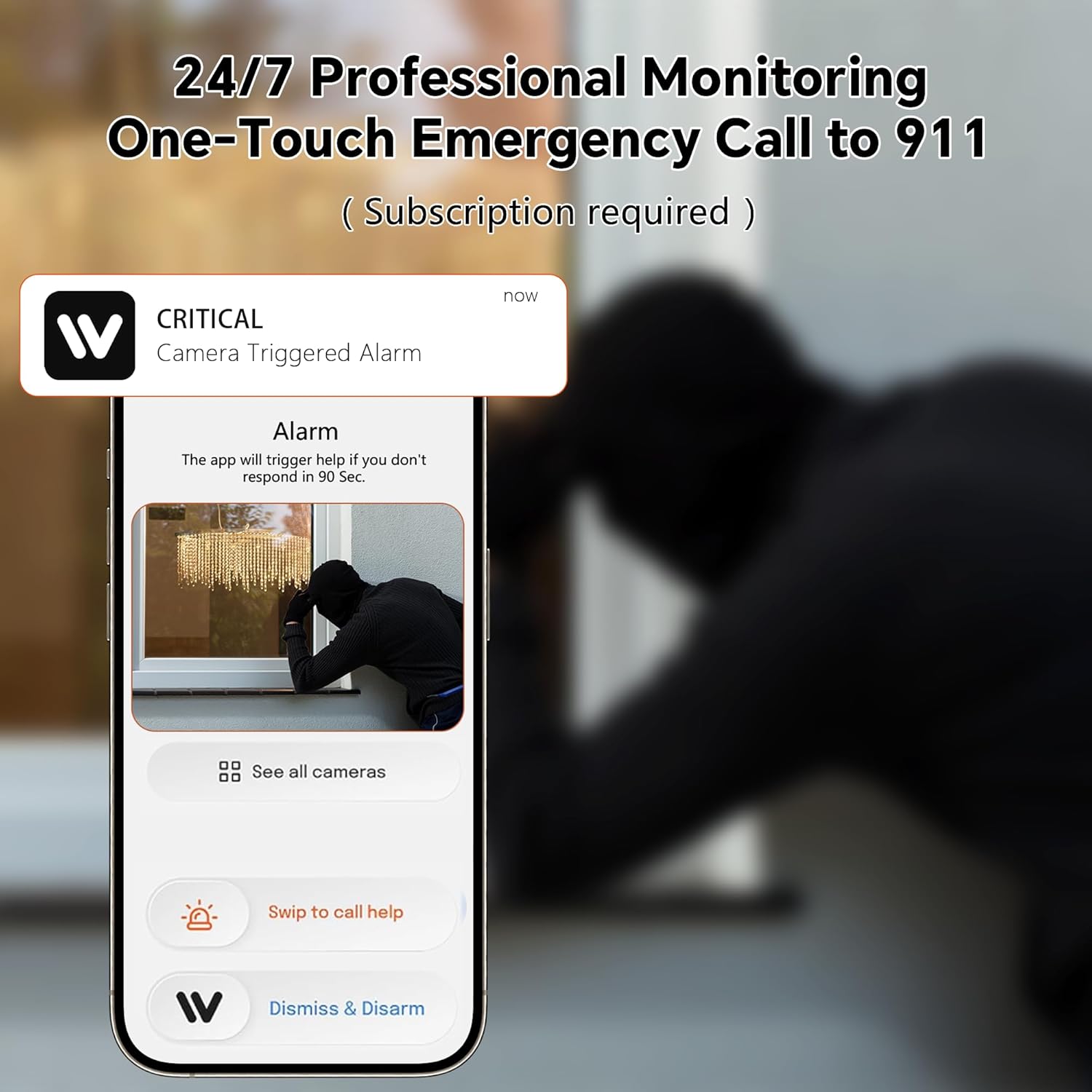 【Smart AI Detection with Instant Alerts & 911 Emergency Call Function】 Get notified only when it matters.Our advanced window security camera features AI that accurately distinguishes between people, vehicles, pets, and other movements, sending instant alerts to your phone to minimize false alarms. For ultimate peace of mind, the optional subscription includes a one-touch 911 emergency call function, allowing you to directly contact local dispatch in case of an intruder or emergency.