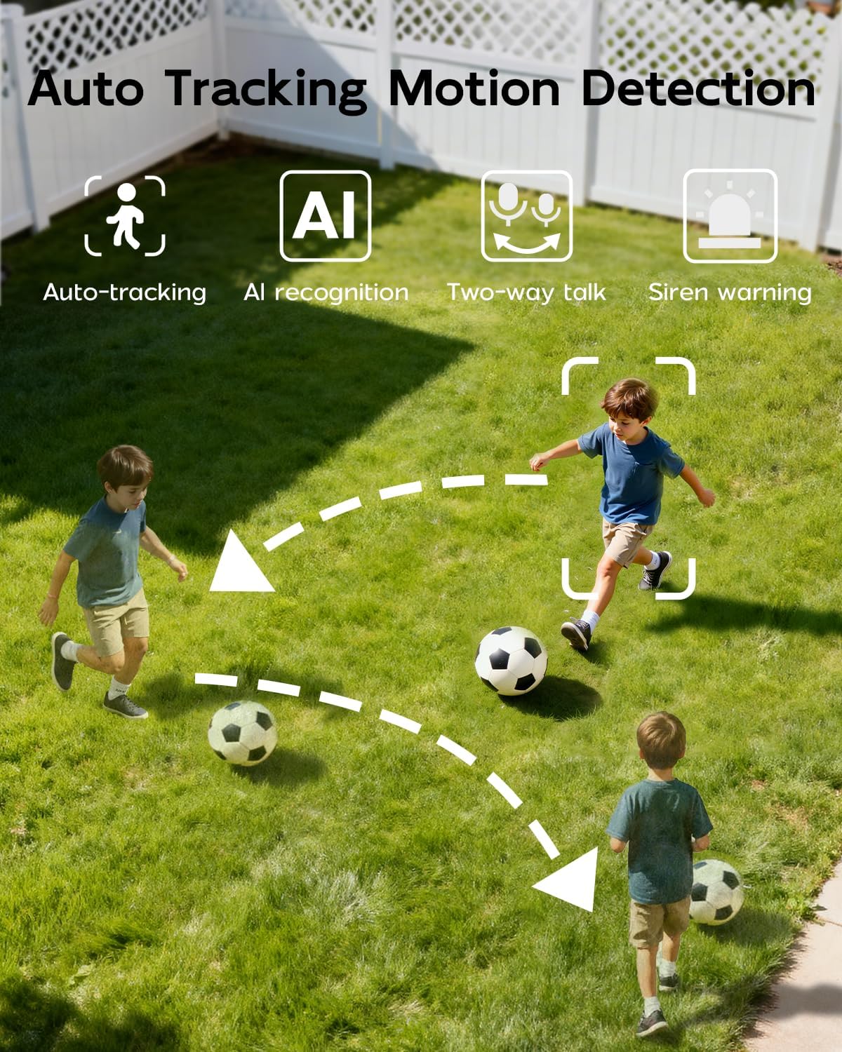 【360° Pan-Tilt & Auto Motion Tracking】Remotely control the camera to rotate 355° horizontally and 90° vertically for complete 360° coverage. When human motion is detected, it automatically tracks the movement by adjusting its PTZ, ensuring detailed recording of every event and keeping your property under vigilant surveillance