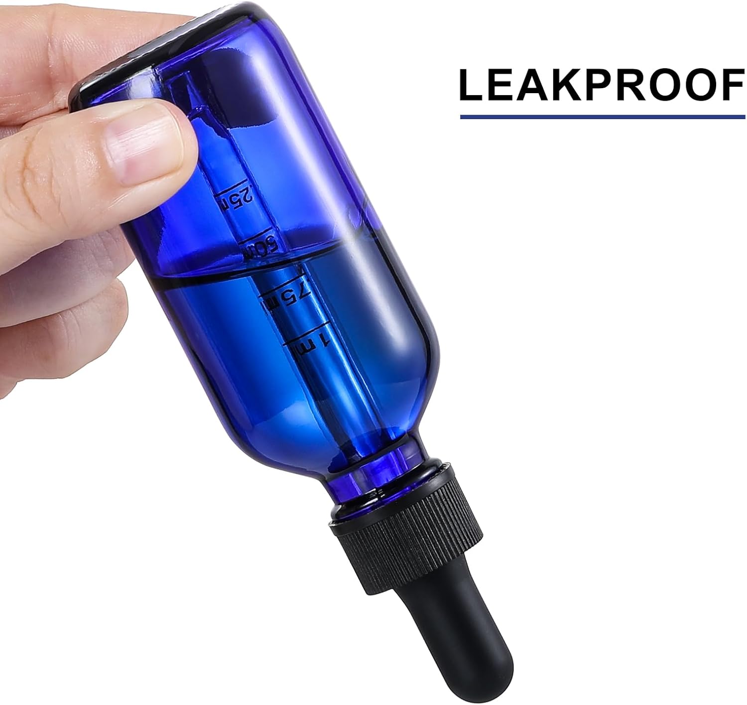 ★Package Includes – 4 pack 2oz (60ml) dark blue glass bottles with calibrated scale eye dropper(1ml) + 1 stainless steel funnel + 4 labels. Size – 1.45 inch wide, 4.8 inch height.